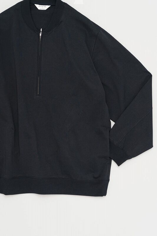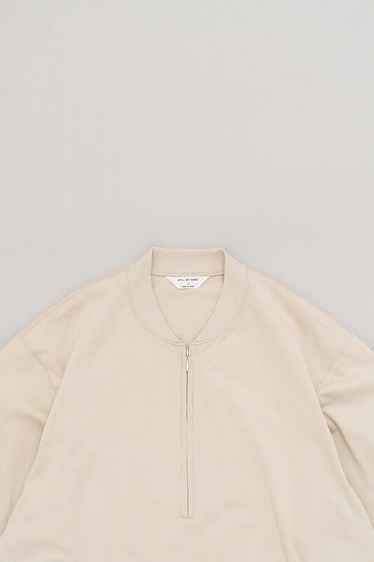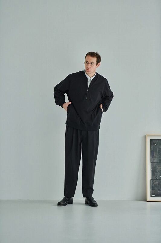スウェットよりもライトな素材感がポイントのハーフジッププルオーバー。