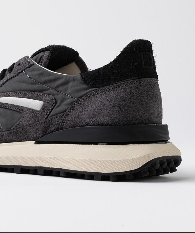 スエードやナイロンなど異素材を組み合わせた、大胆なカラーブロッキングが特徴です。