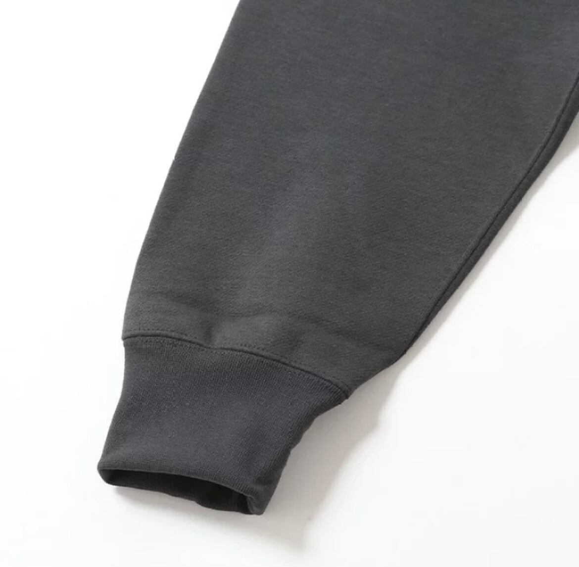 中厚手の裏毛生地は、乾きやすいポリエステル繊維を表に配置し、裏毛側には水分を含みにくいポリプロピレン繊維で構成。汗による濡れ感を軽減しながら速乾力を向上させています。