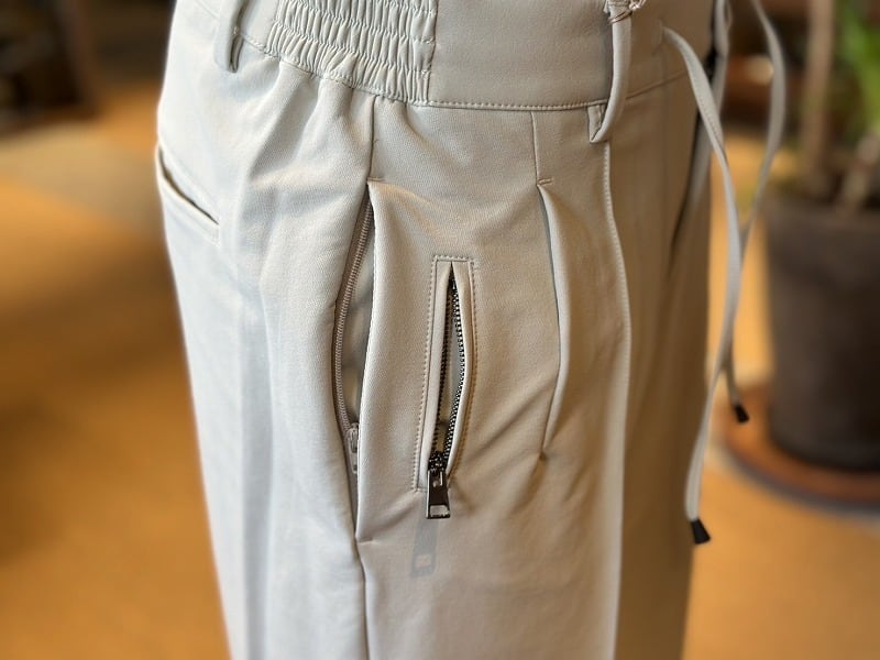 ゴルフなどアクティブに着こなしたいモデルですので脇ポケットにはファスナーを付けておりポケットの中身を落としてしまう心配もありません。
