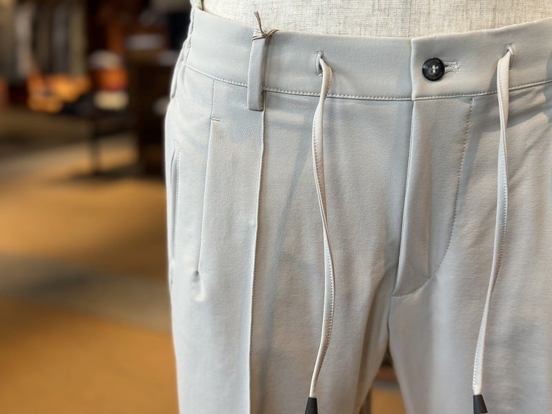 シルエット同様にウエストも若干ゆとりを持たせているので通常よりワンサイズ下げても穿けるかもしれませんのでサイズスペックを見比べてみて下さいね。