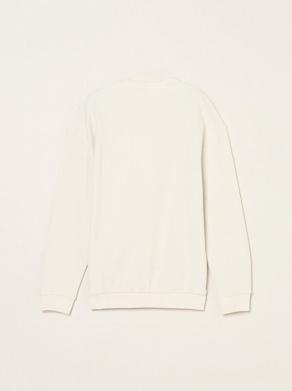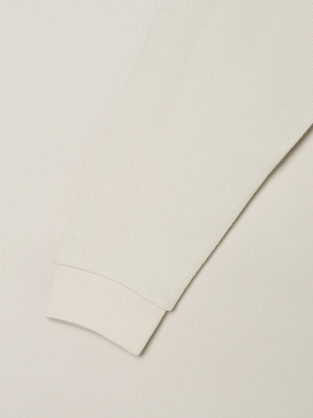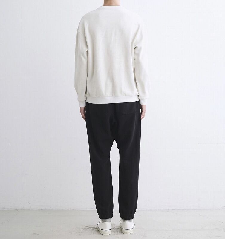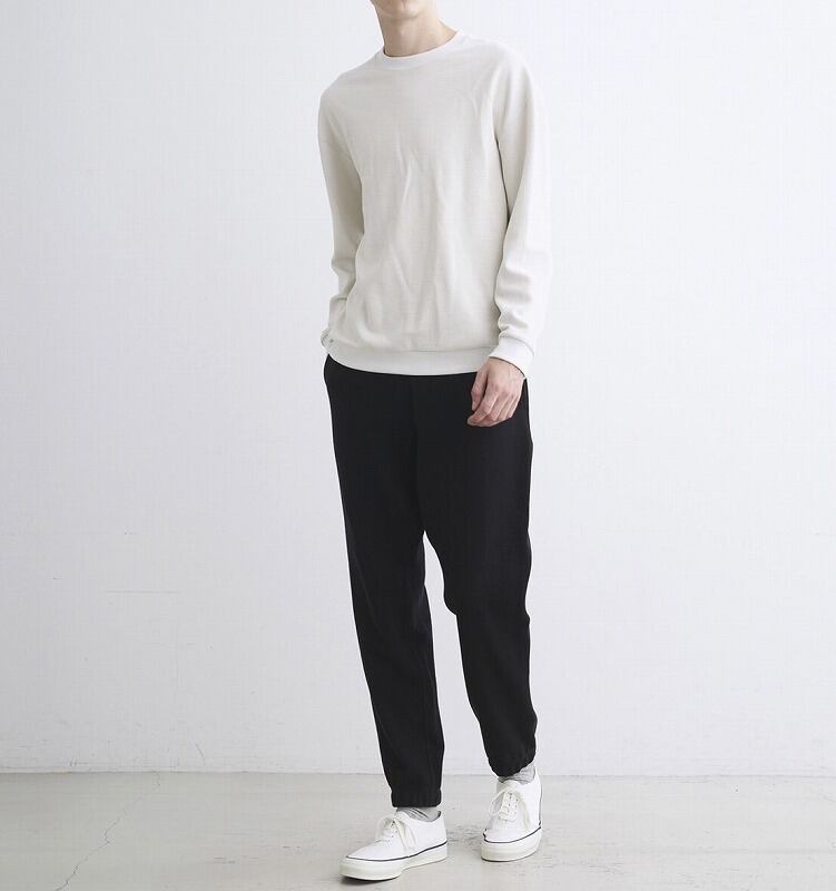 手持ち感と温かみが出るように太めの糸を使用し、スウェットの様に着こなせる1品です。