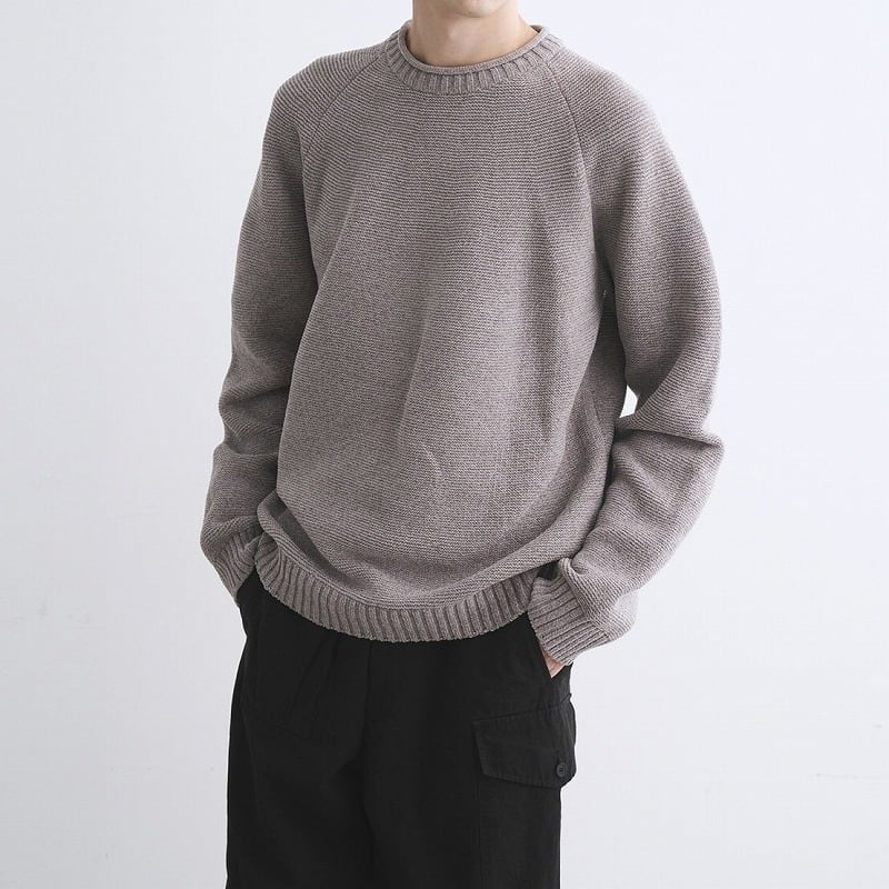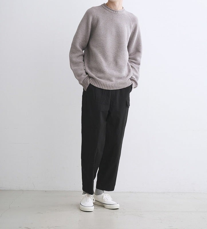 ネックラインは、あえてリブを高めに設定したクルーネックデザインで、首元に立体感が生まれ、大人らしい印象に。