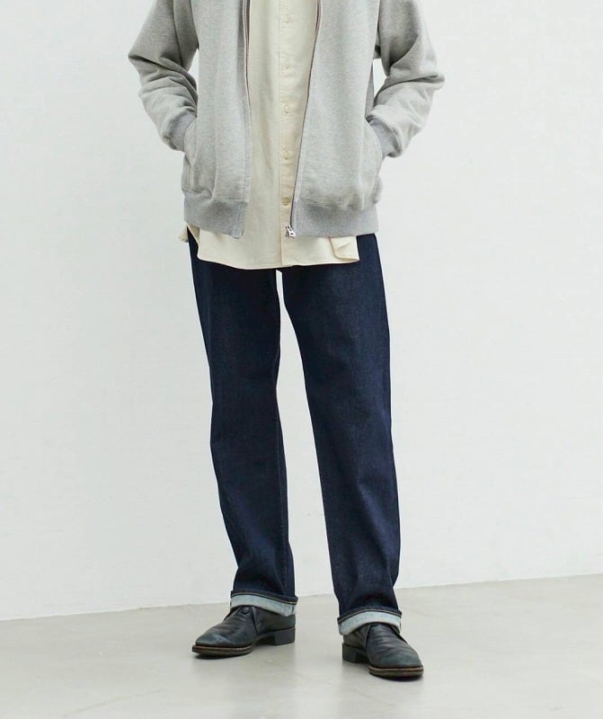 オーセンティックな雰囲気でありながら、今のスタイリングに合わせやすいクラシックストレート“BEN(ベン)”。深めに設定された股上で、安心感のある穿き心地を実現しています。25AWからは、レッグラインを幅1cm太く修正し、肌離れのあるフィット感にアップデートしました。更に、股下丈も2cm伸ばし、78cmにする事で様々な着こなしを楽しんで頂ける様にしました。