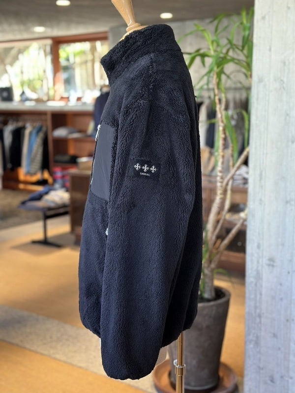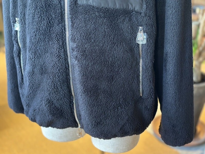 滑らかなタッチ、ソフトな風合いが特徴のフリースボアを使用したスタンドカラージャケット。