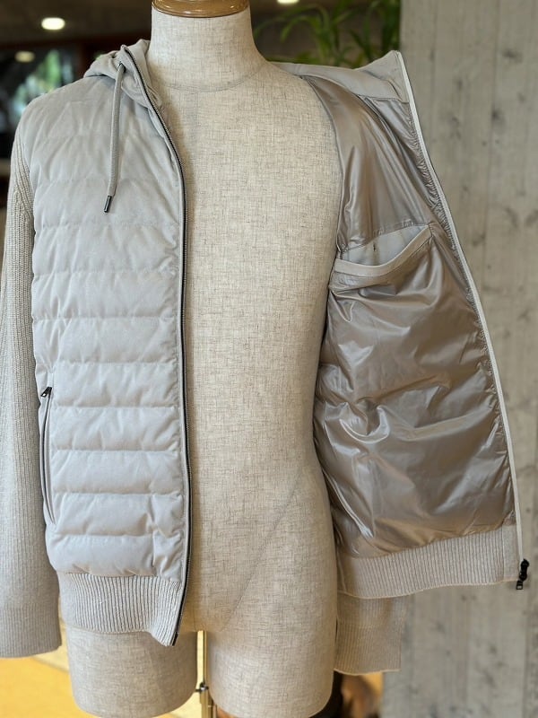 HERNO / Resort エコスエード×リブニットフーディーダウンブルゾン