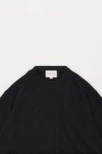 太番手のネップ感のあるローシルクを表に肌に触れる側には少しハリ感のある綿糸をプレーティング編みした丸首プルオーバーニット。7G天竺の編み地で少し厚手のニットで今回は春の立ち上がりニットでの提案ですが、夏以外年中着て頂けるニットだと思います。