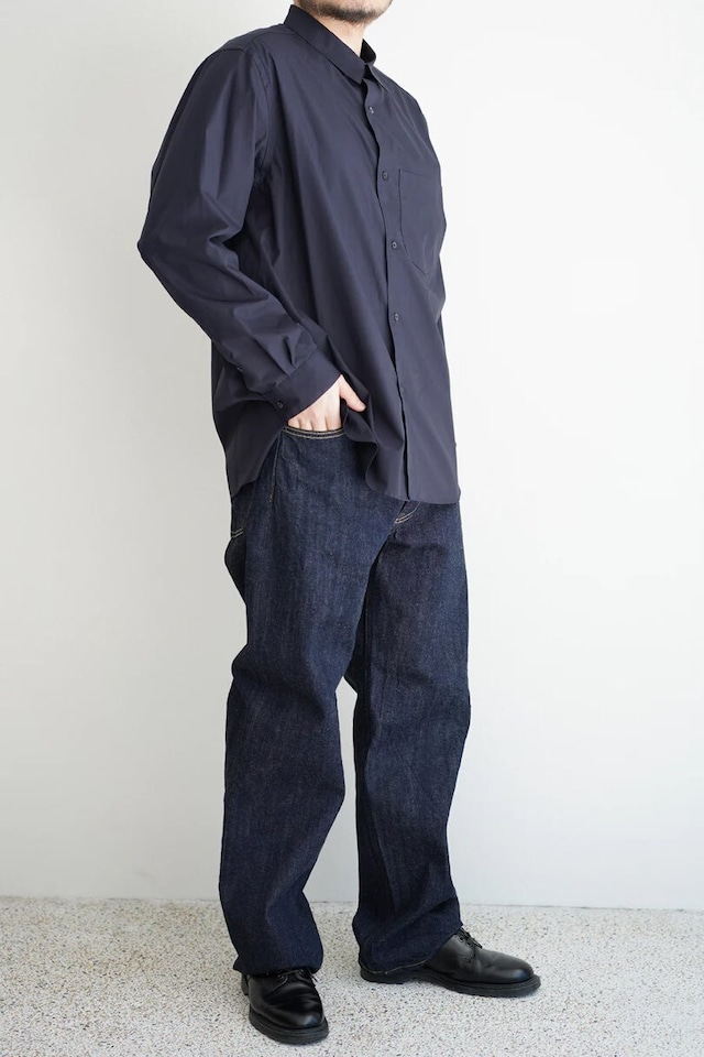 兵庫県の西脇産地で作製したオリジナル先染めブロード素材の定番レギュラーカラーシャツ。