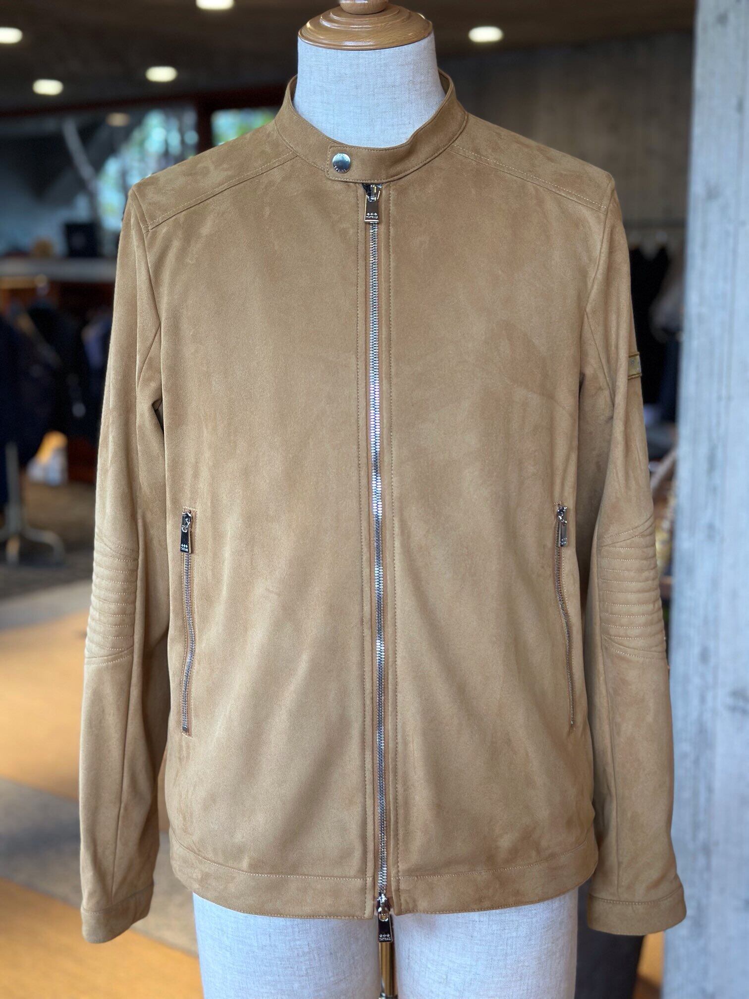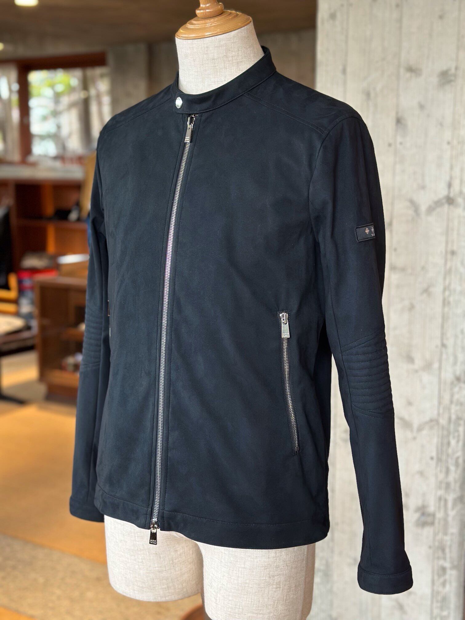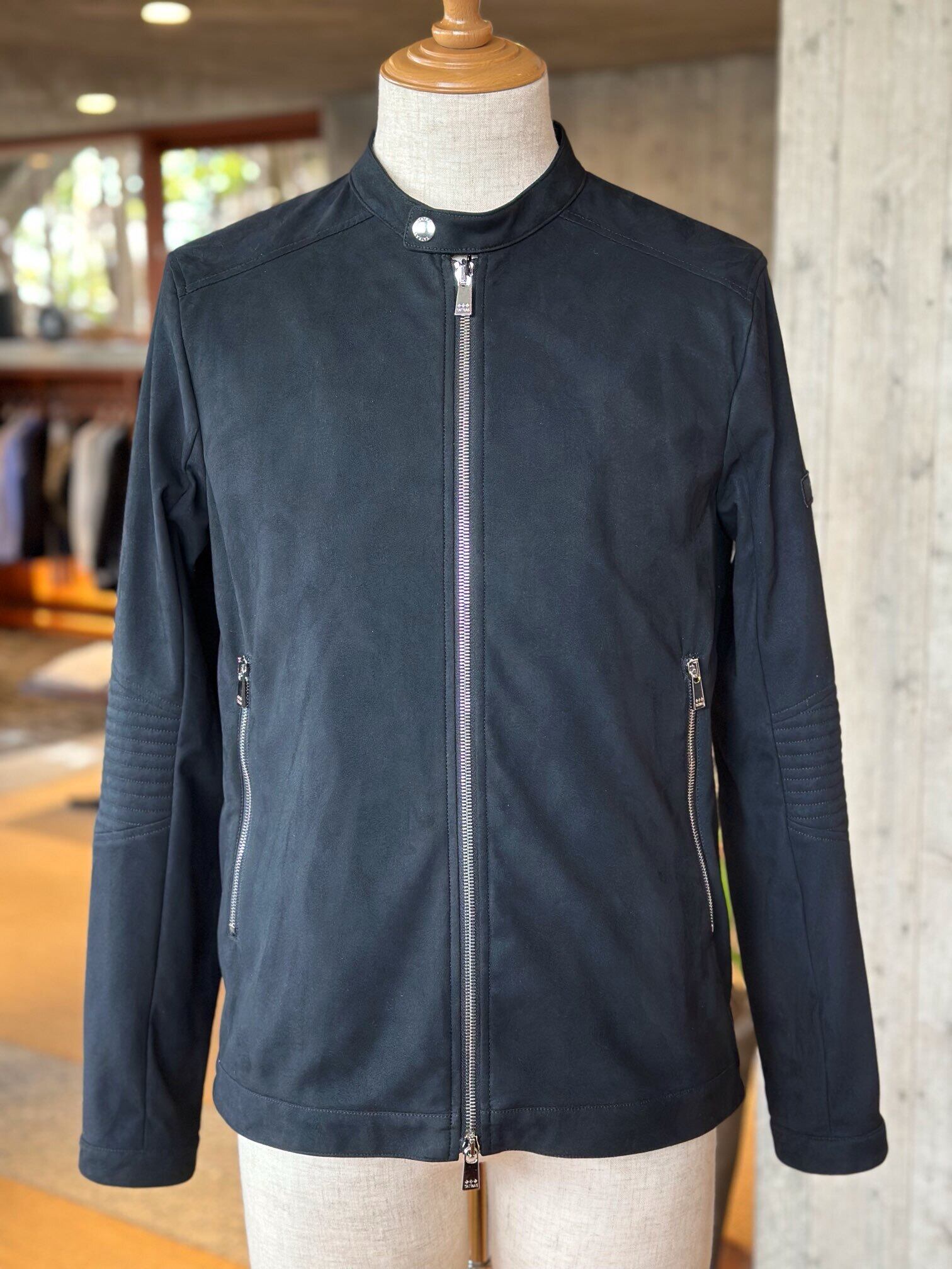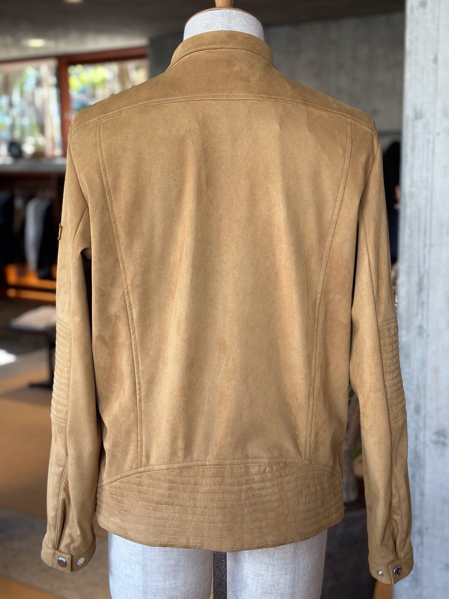 滑らかな肌触りと軽やかな着心地が魅力のフェイクスエードを使用した、シングルライダースジャケット。