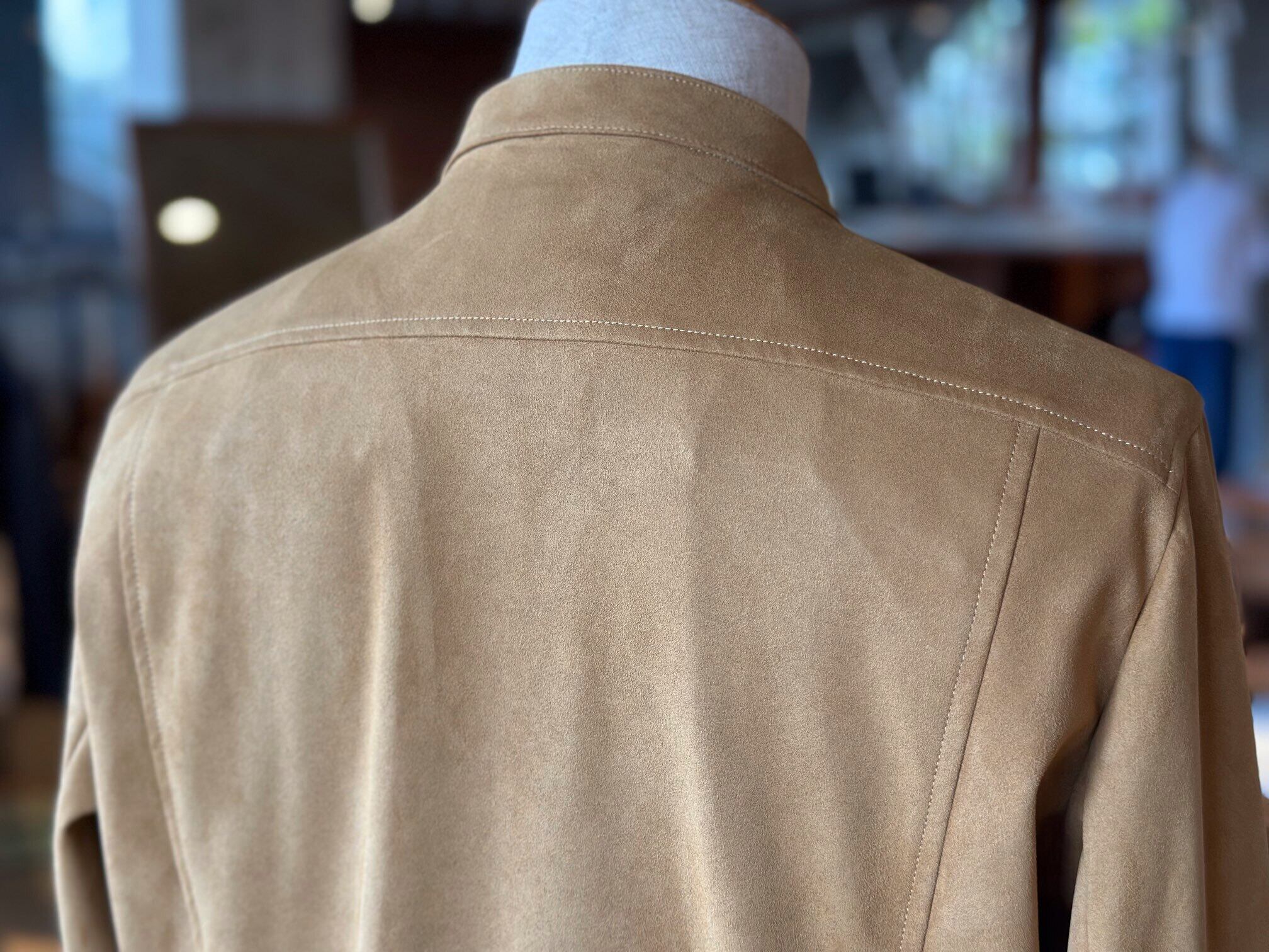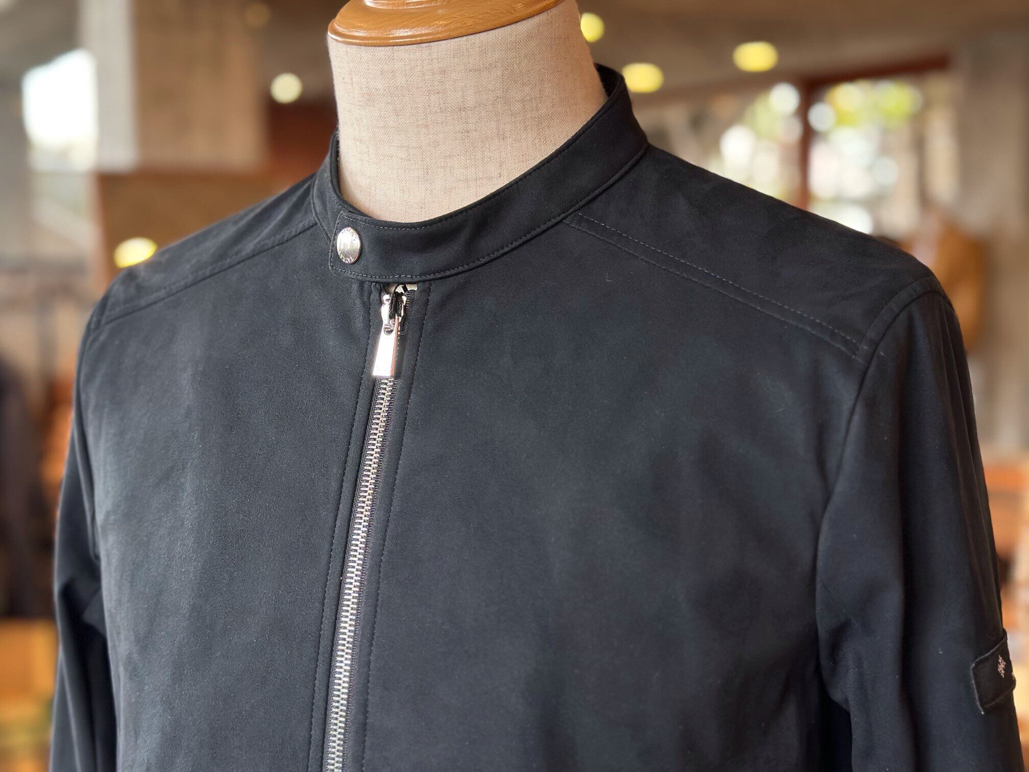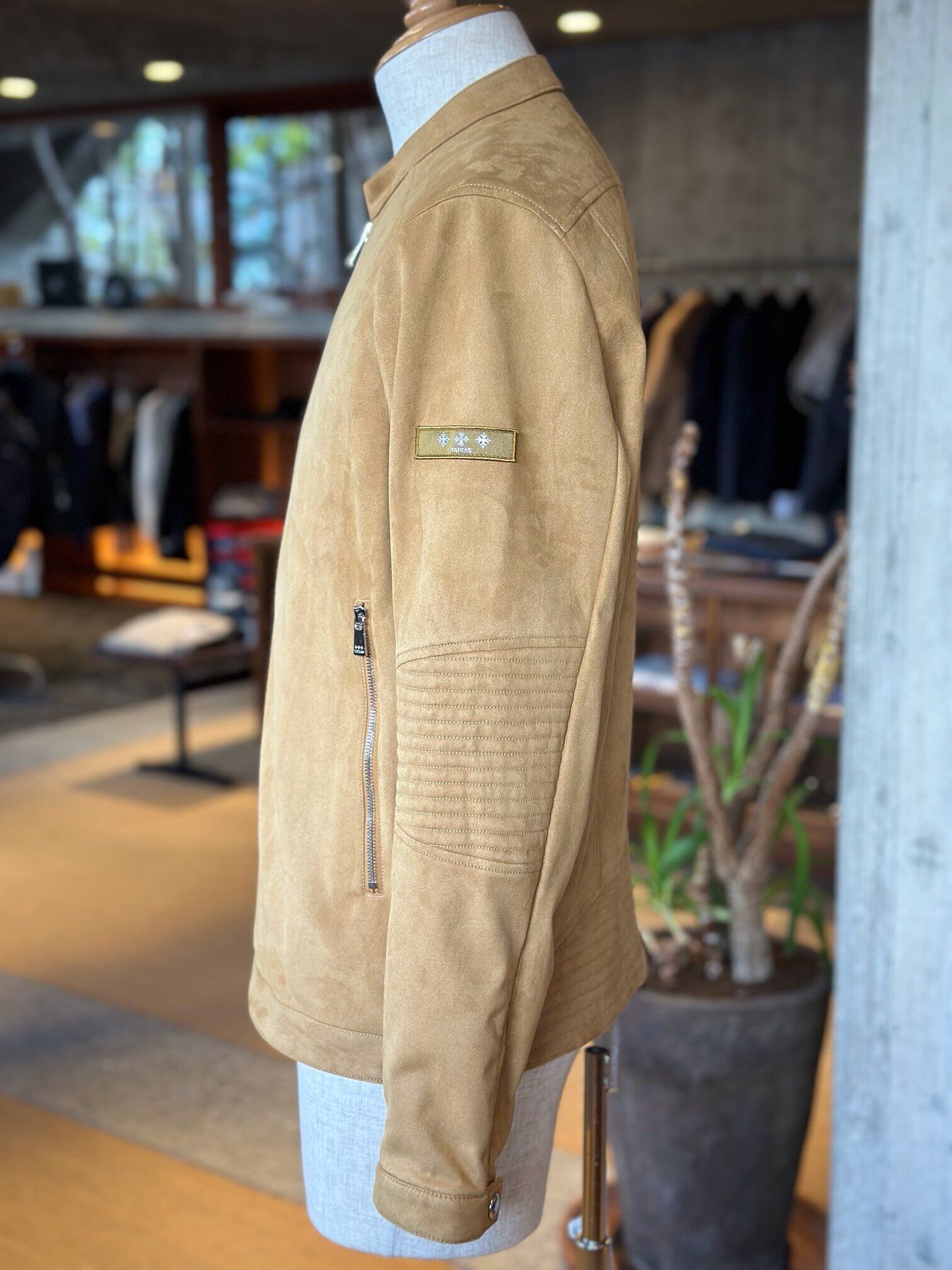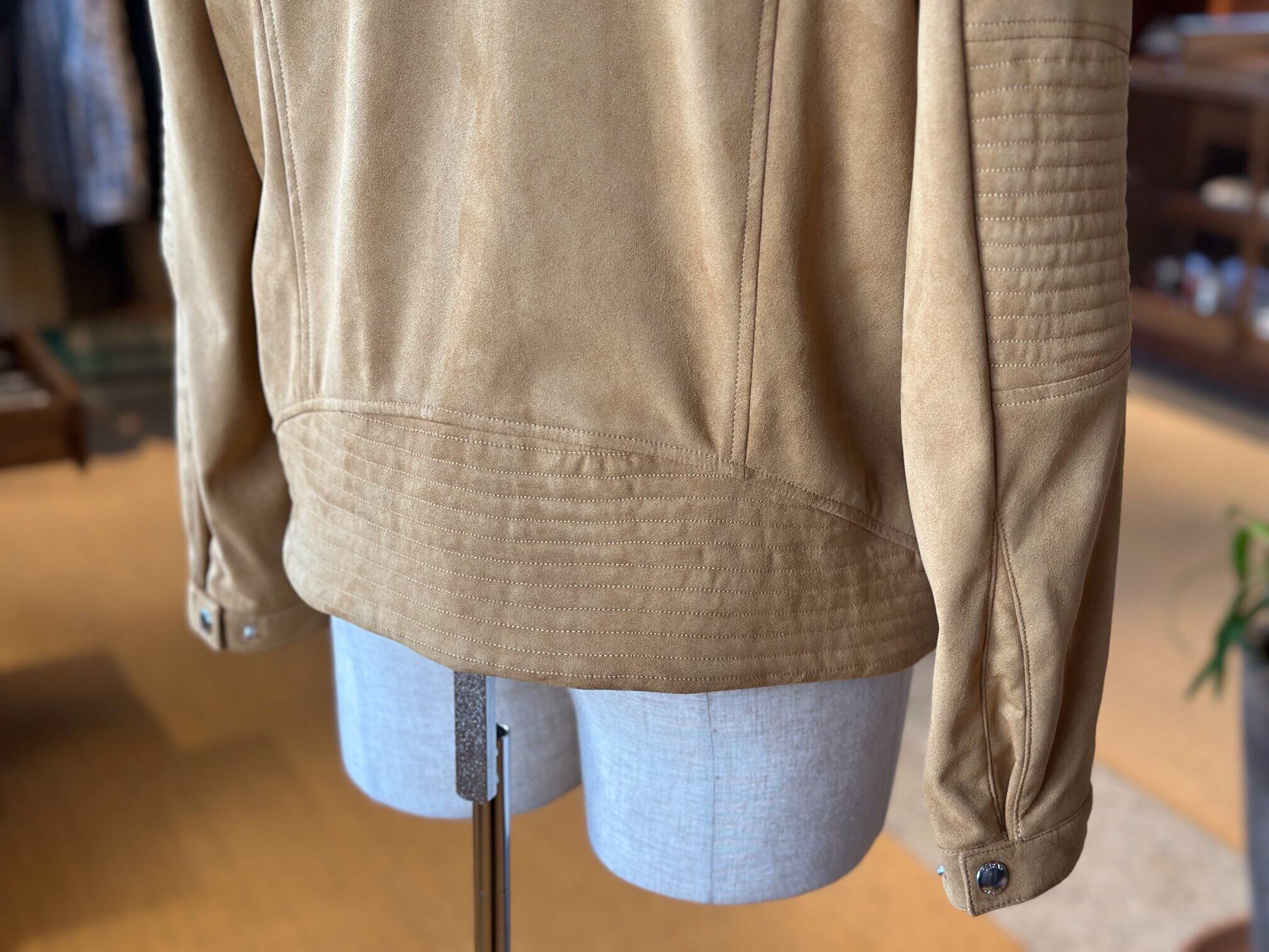 滑らかな肌触りと軽やかな着心地が魅力のフェイクスエードを使用した、シングルライダースジャケット。