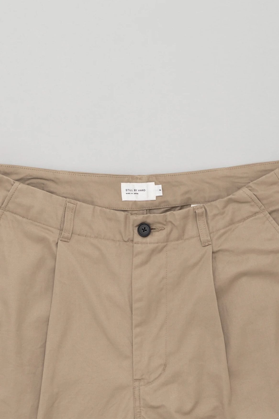 別注セルビッチチノ素材のテーパードタックパンツ。STILLBYHANDらしくあえて綺麗な糸を使用したセルビッチファブリックを使用。ハイウエストに履いて久しぶりに革靴を合わせても良いなー。なんて考えながらデザインしました。シルエットは中太ストロングテーパード。