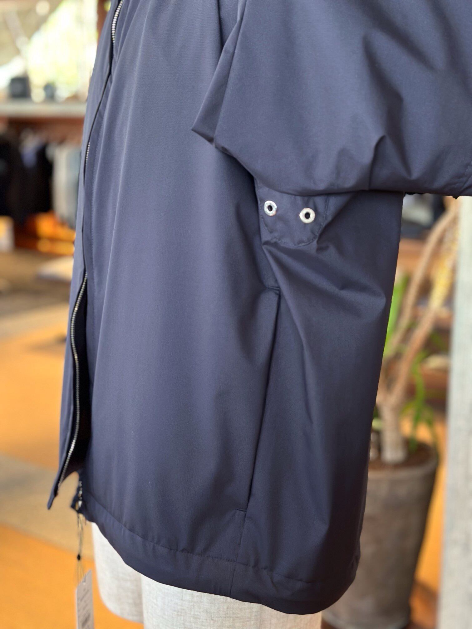 ファスナーを隠す仕様の前立てにより、あえて光沢感を抑えたシックな表情に。