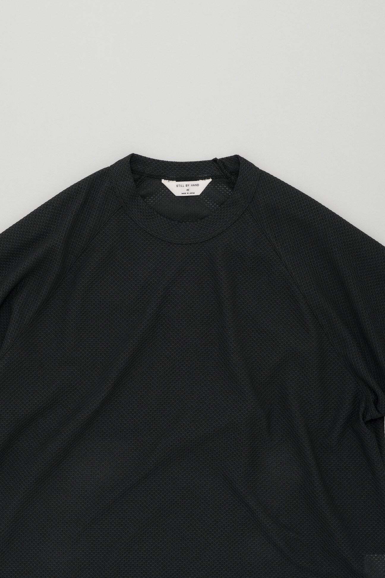 少し透け感のあるニットのような素材感で、アームにゆとりを取ったラグランススリーブ。