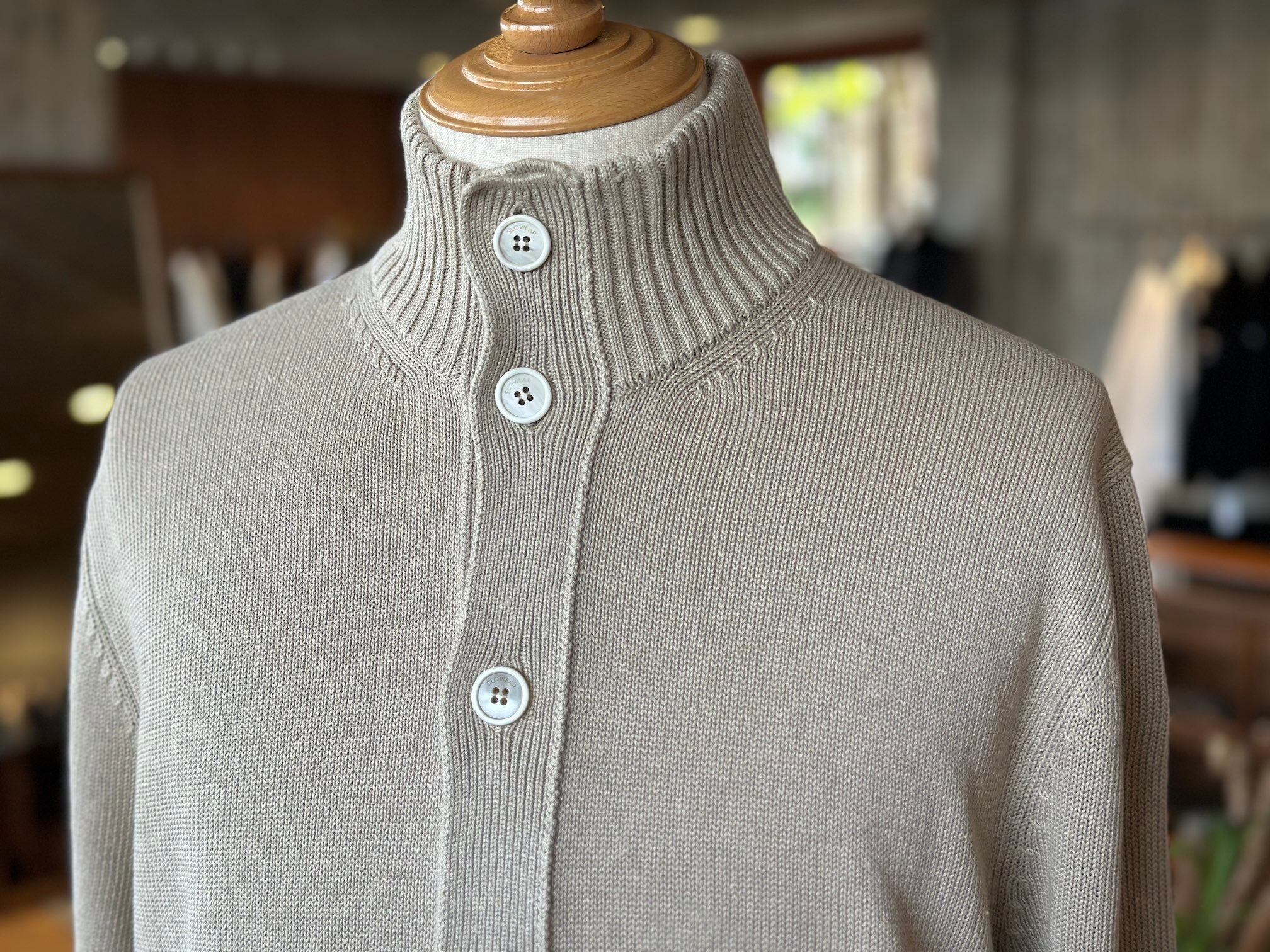 ※2025秋冬シーズンより製品に取り付けられるブランドネームや下げ札が刷新。「SLOWWEAR ZANONE」というブランドネームとなり、ボタンにも”SLOWEAR”の刻印がさりげなく入っています。