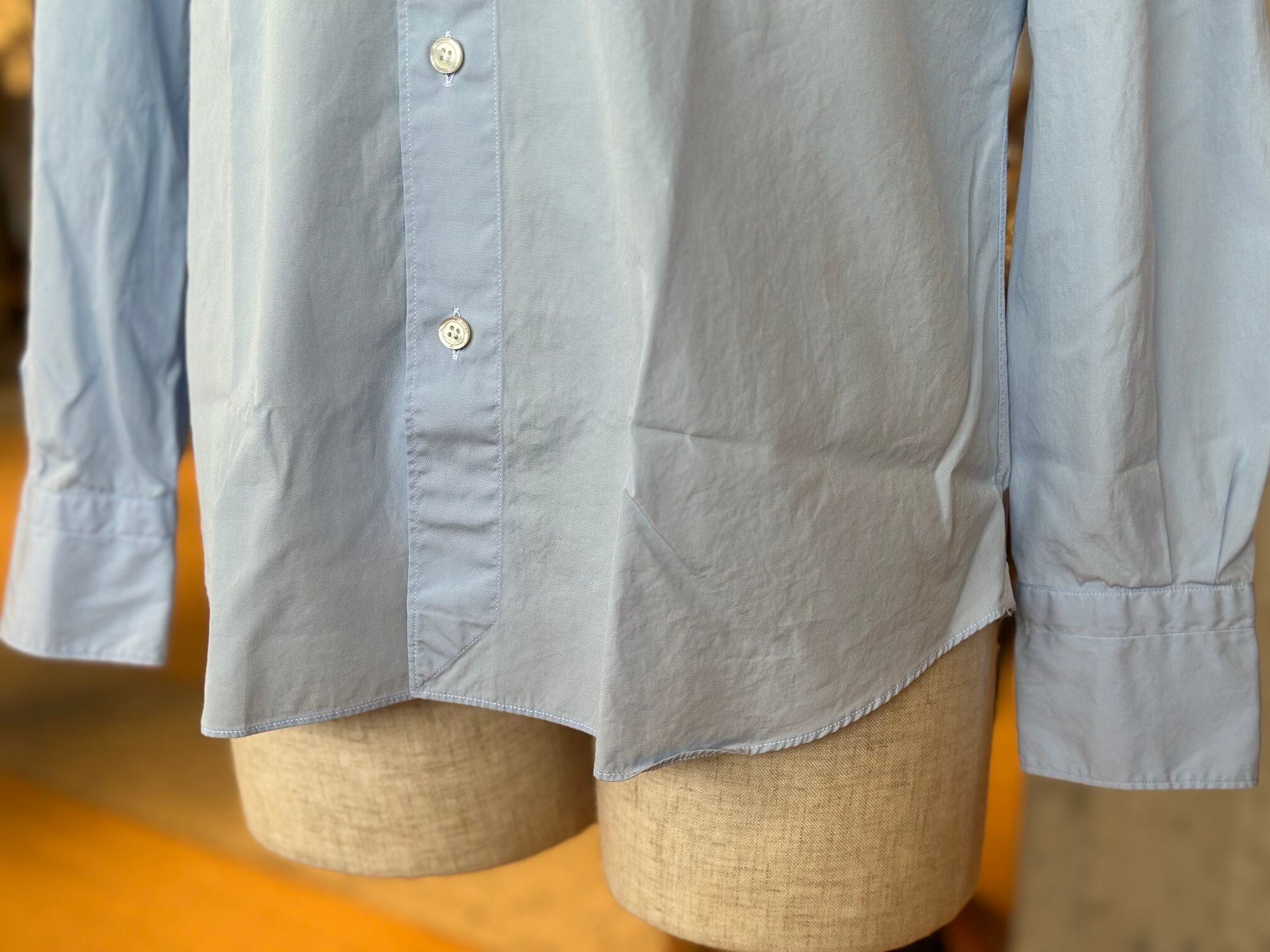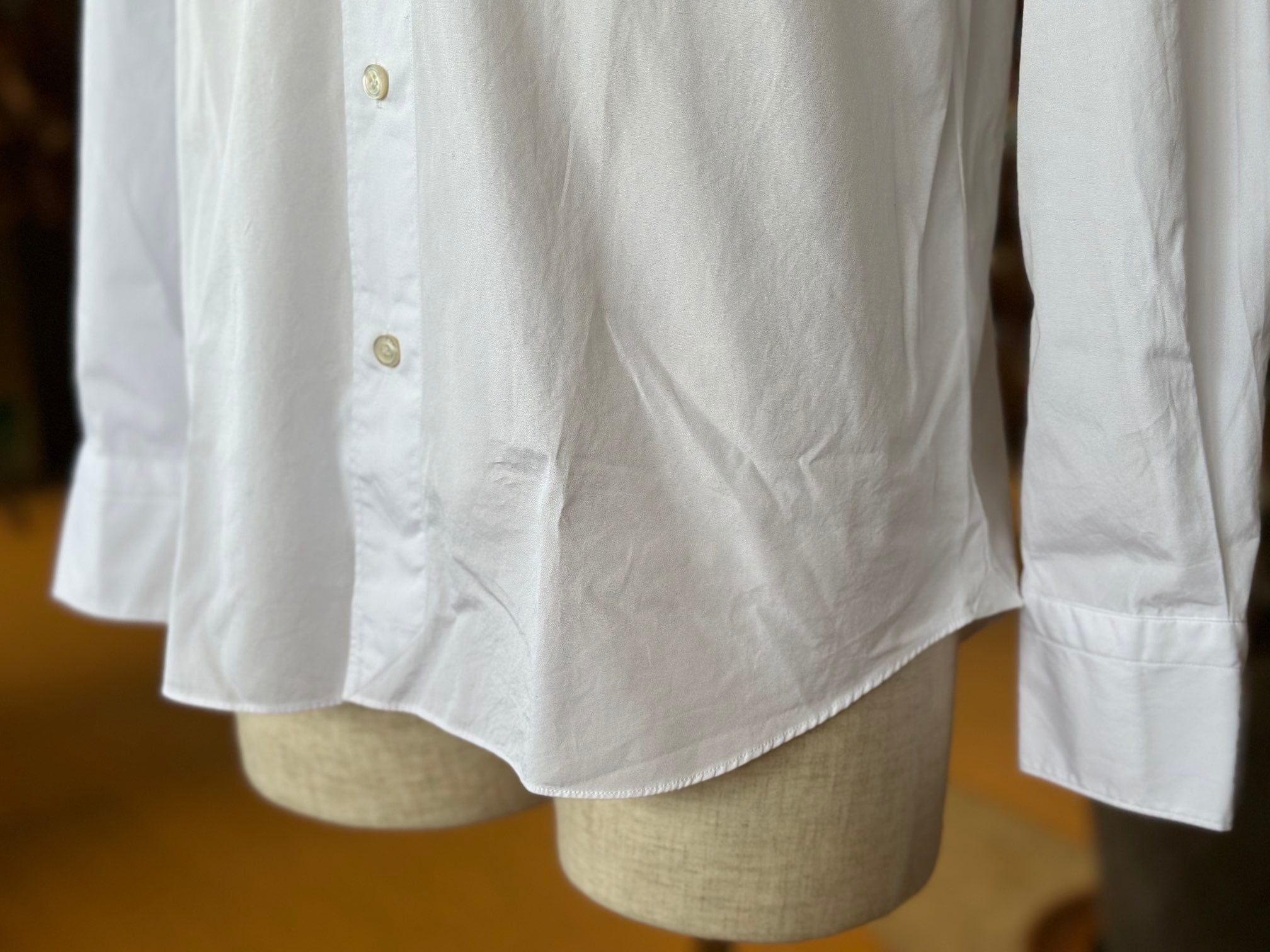 コットンポプリン100%を120番手双糸で仕上げることで、端正な表情でありながら、着込むほどに身体に馴染む素材感が魅力です。ひと目で伝わる上品な光沢感と、なめらかなタッチが、大人の装いをさりげなく格上げしてくれます。流行に左右されない普遍的なデザインと確かな仕立てにより、シーズンを重ねても色褪せることなく着続けられる一着に仕上がっています。