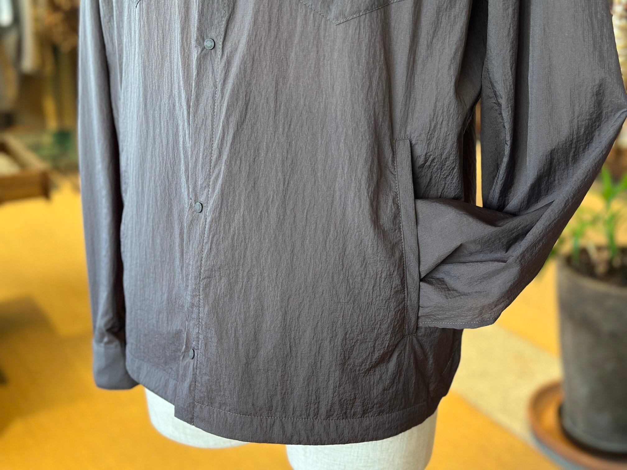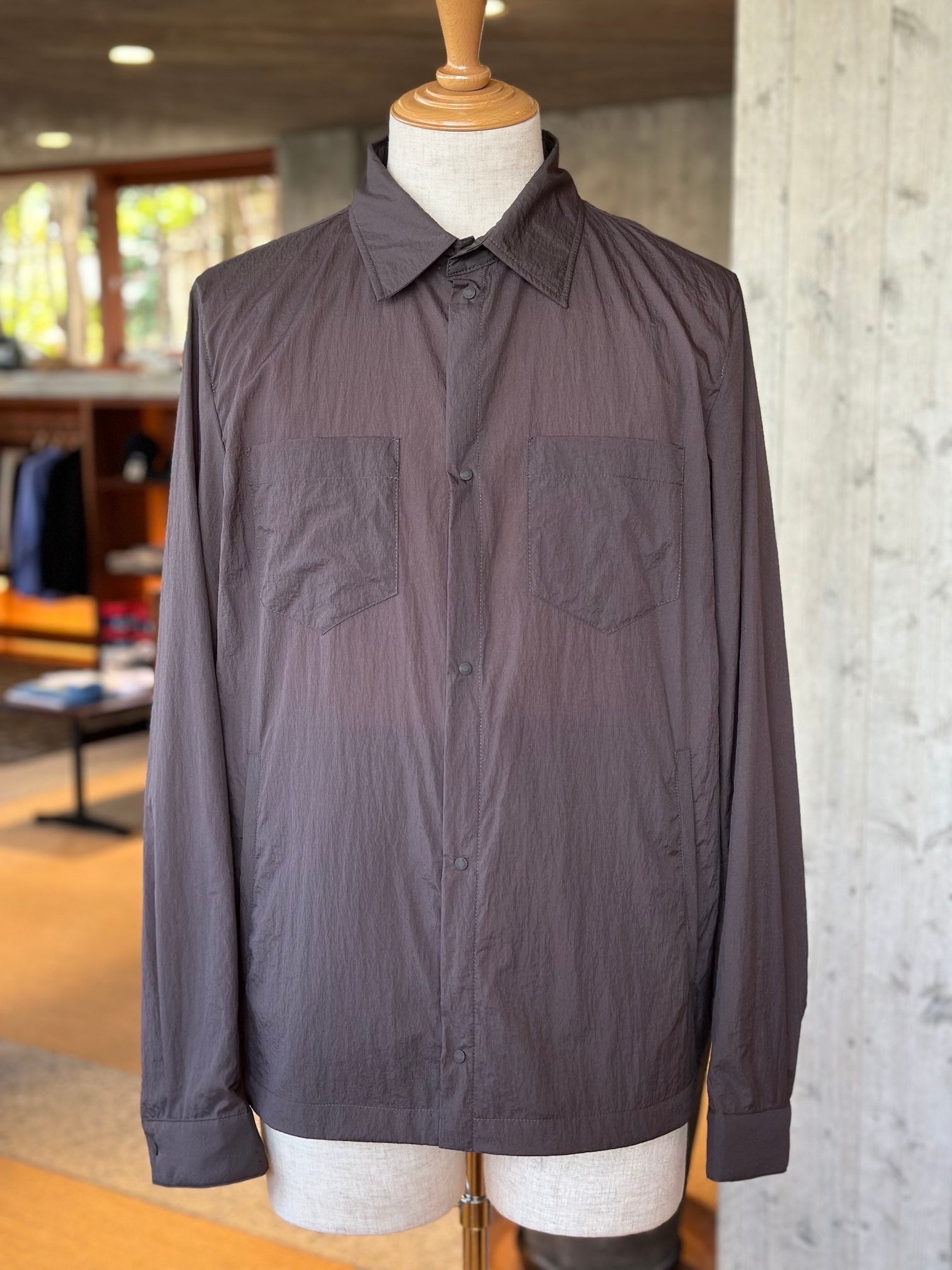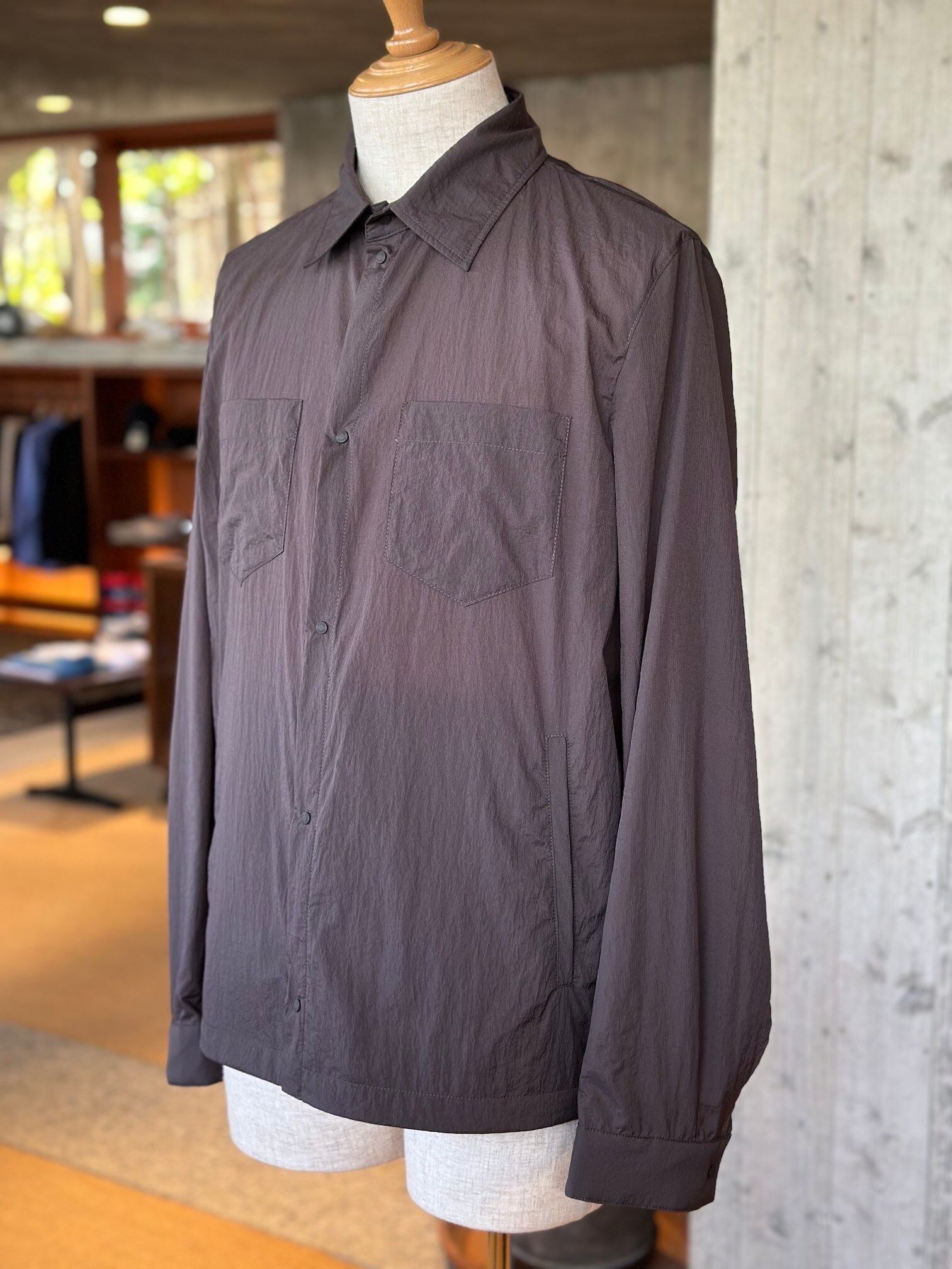 マイクロリップストップ素材を使用したオーバーシャツです。撥水加工を施した、軽量かつ高強度のマイクロリップストップナイロンを採用。機能性と耐久性を兼ね備えた一着に仕上がっています。胸元にはパッチポケットを配し、程よいカジュアル感をプラス。アウターとしてもインナーとしても活躍する、汎用性の高いアイテムです。