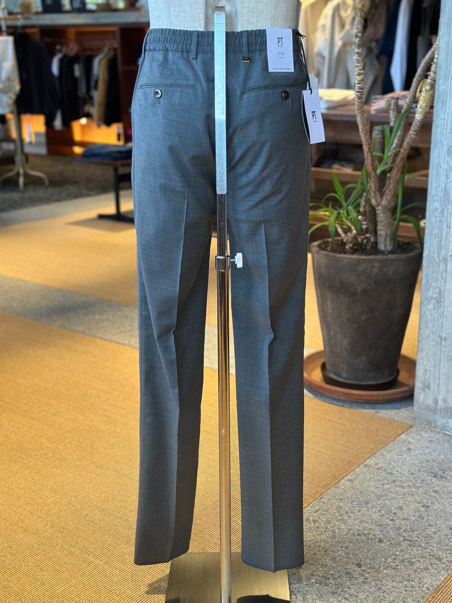 PTは、2008年にイタリアのトリノで「メンズクロージングにおいて最も重要なアイテムはパンツ」というコンセプトの下、パンツ専業メーカーとして誕生しました。 PT TORINO(ピーティー・トリノ)は、それまでクラシック一辺倒だったドレスパンツの世界に、幅広いデザインソースから取り入れた多彩なバリエーションを揃えました。 各モデルにテーマを設定し、独自のデザインでその世界観を演出。パンツの可能性を広げる多様性にくわえ、そこには美しいヒップラインとともに脚長効果も備えた完璧なシルエットが構築され、現代の魅力を存分に伝えます。 PTのブランドネームPT TPRINOは、創業地であるトリノへのトリビュートとともに、究極のパンツを創るという強い意志が込められています。