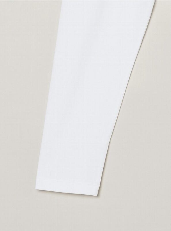 繊維長が長くしなやかなアメリカピマコットンを使用し、ハイゲージの編み機で編むことで透けづらく、適度なハリがありながら柔らかな肌ざわりを実現しました。