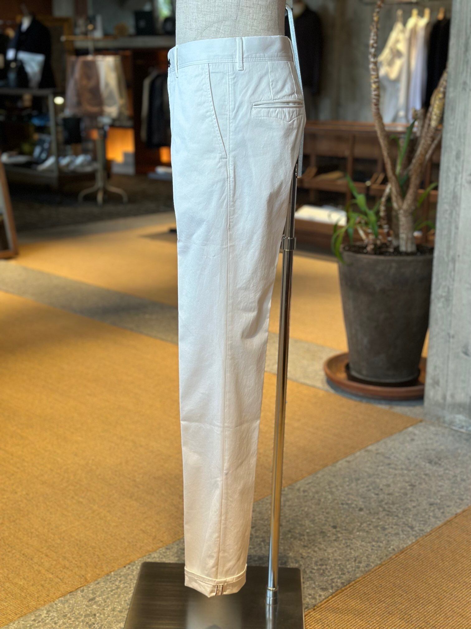 こちらは大定番のストレッチコットン素材の一本。サラッとした質感に春夏シーズンに丁度いい厚みの生地感で柔らかな穿き心地をご体感いただけます。