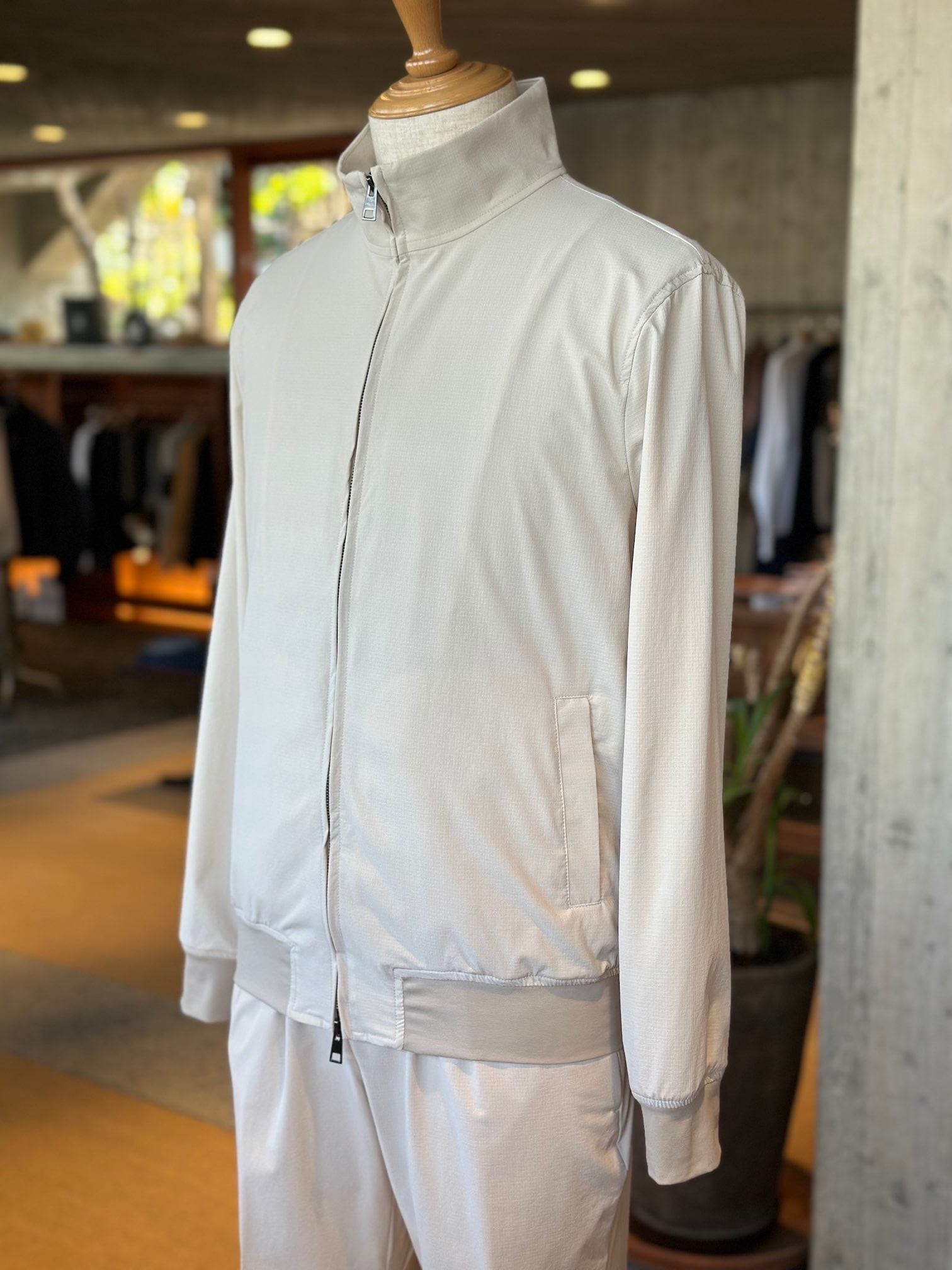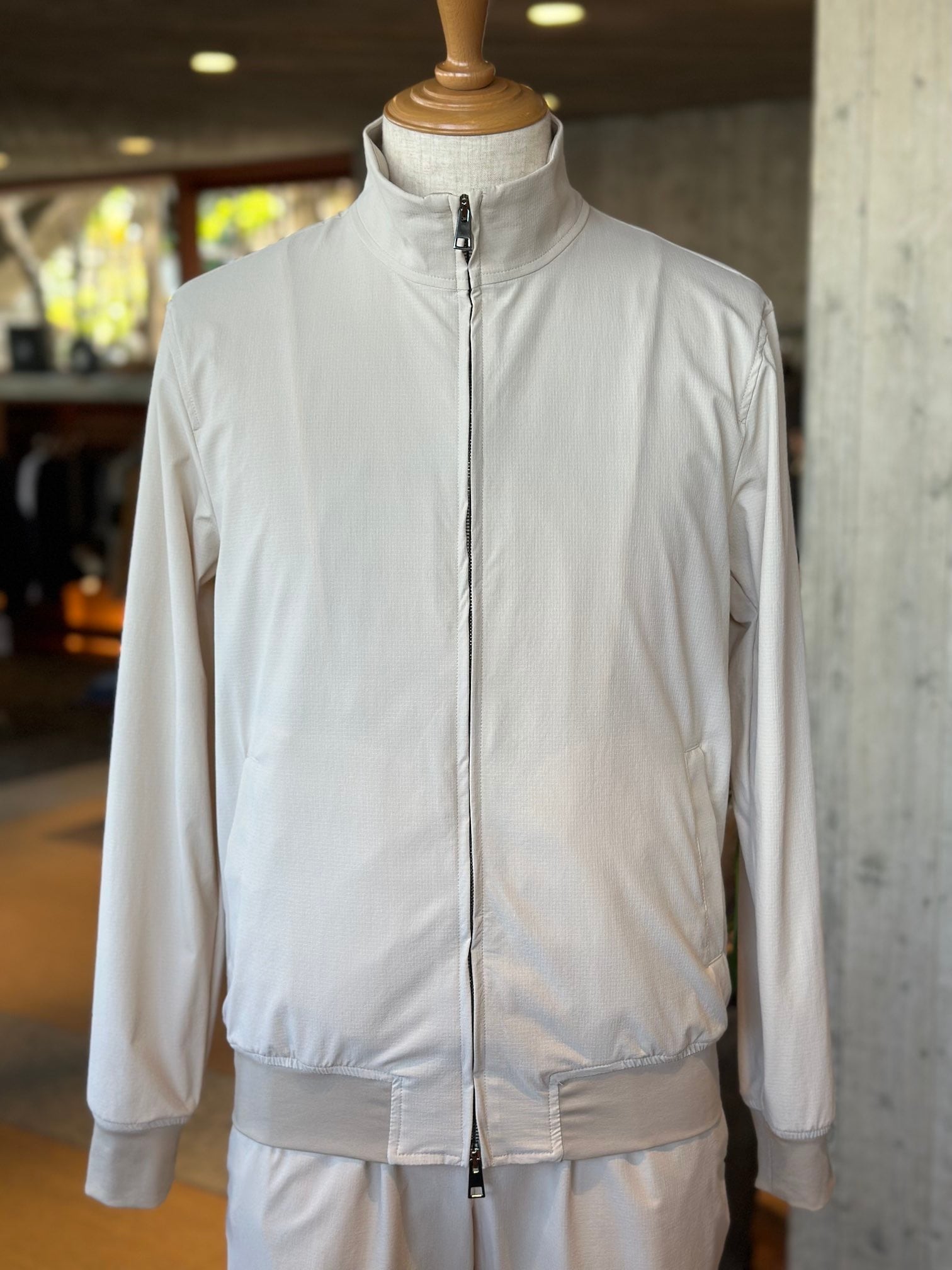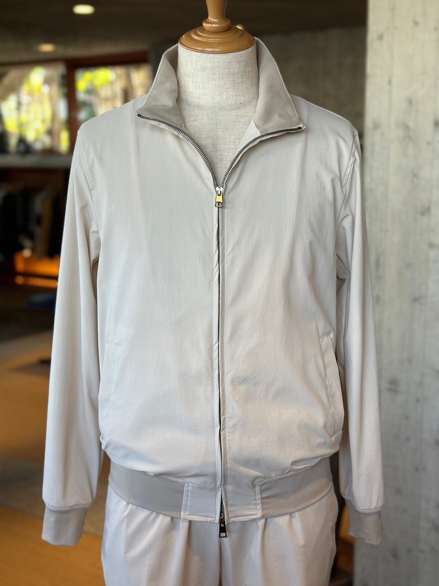 ジャブスの定番フーディ`プッチ‘のシルエットをベースに衿のデザインを変えてシンプルなデザインに仕上げたスタンドカラーブルゾン、プッチーノ。プッチ譲りの細身のシルエットによりアウターのみならず、コートのインナーとしても使えるユーティリティブルゾン。