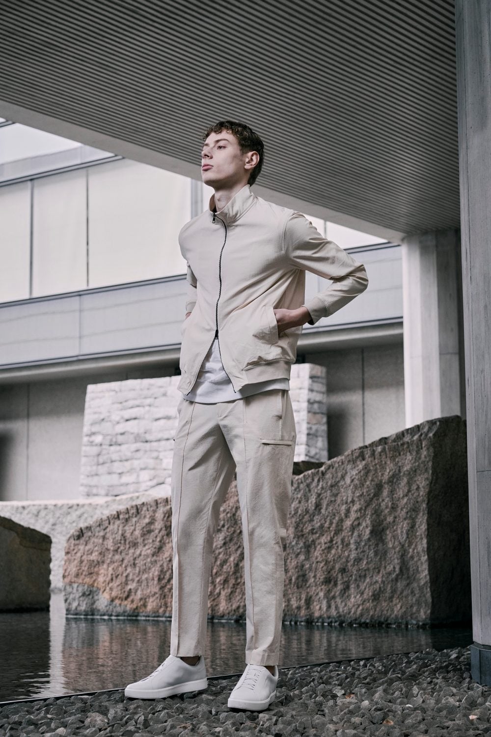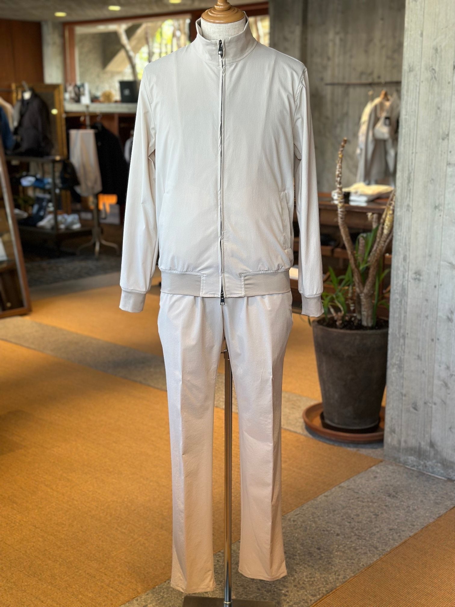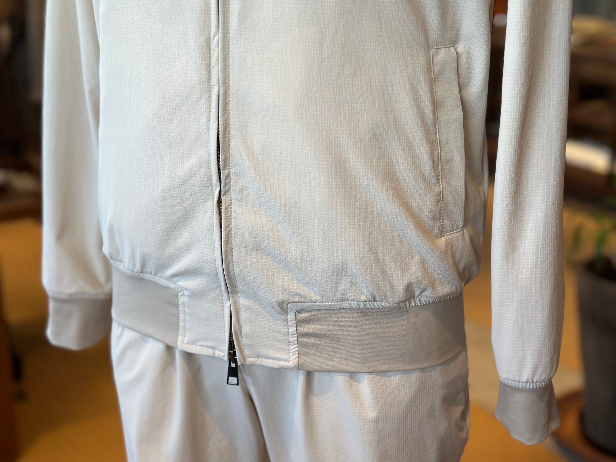 ジャブスの定番フーディ`プッチ‘のシルエットをベースに衿のデザインを変えてシンプルなデザインに仕上げたスタンドカラーブルゾン、プッチーノ。プッチ譲りの細身のシルエットによりアウターのみならず、コートのインナーとしても使えるユーティリティブルゾン。