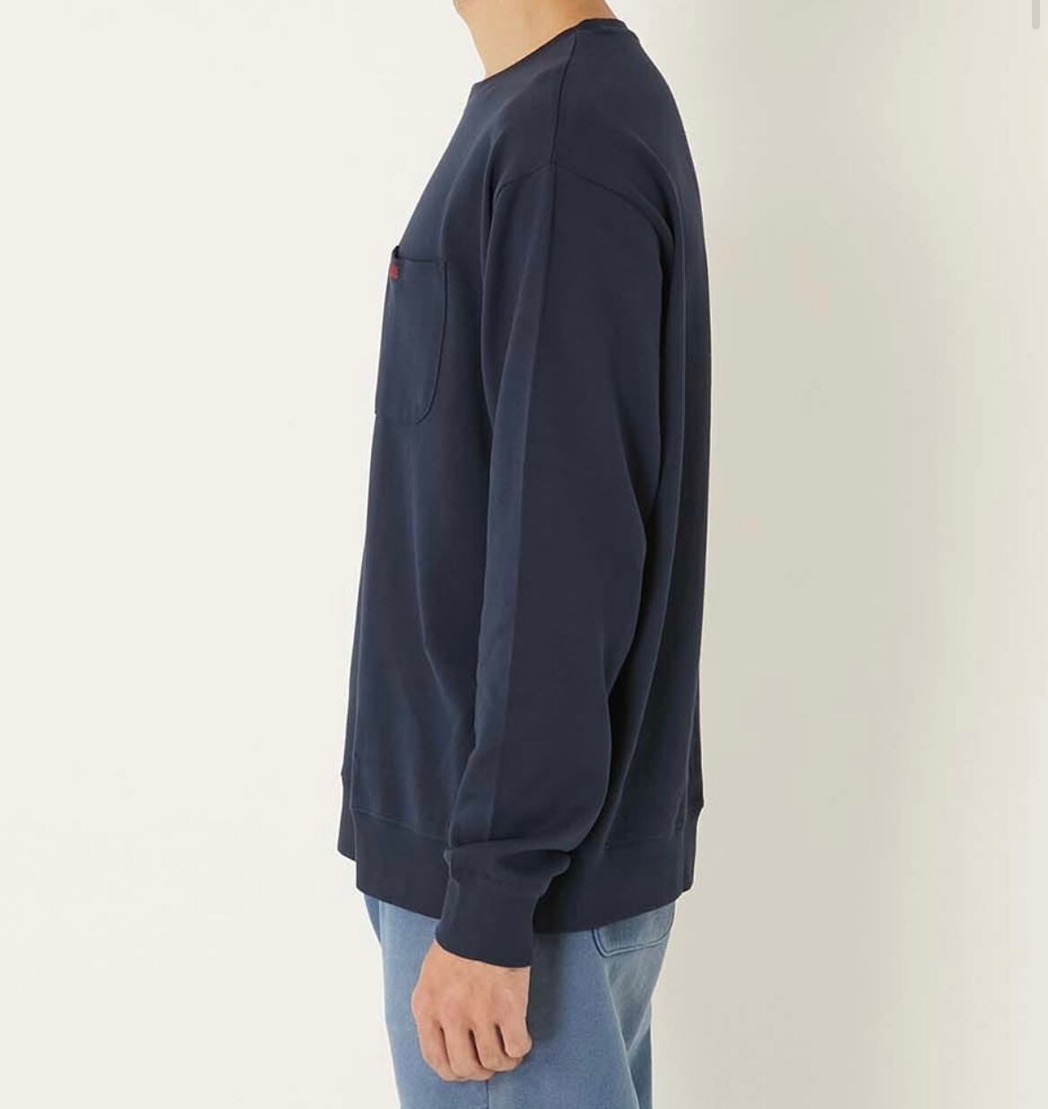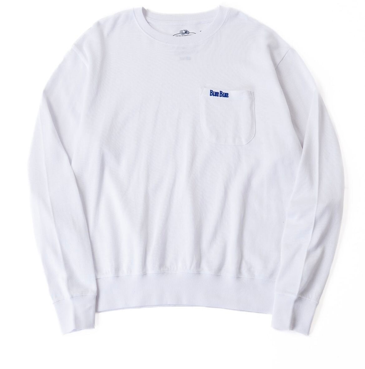 FRUIT OF THE LOOMが誇る着心地の良さと、BLUE BLUEのシンプルで洗練されたデザインが融合した別注のロングスリーブニットソーです。胸元にはBLUE BLUEのロゴ刺しゅうを施しています。柔らかで肌触りの良い生地は、カジュアルながらもどこか上品な雰囲気を演出します。ベーシックなデザインだからこそ、シルエットやディテールにこだわっています。