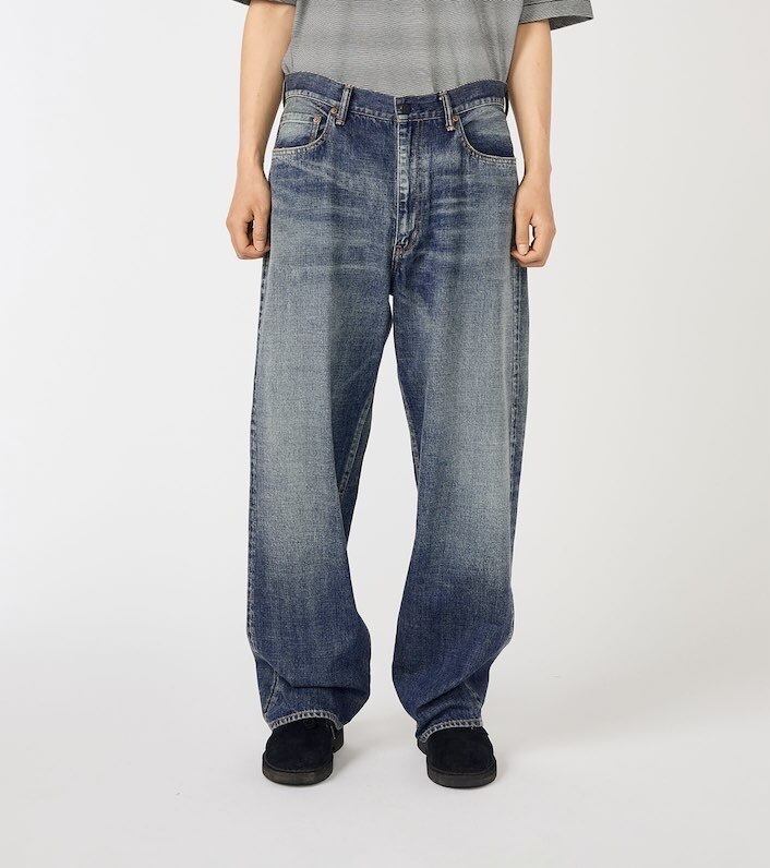 ・ワイドストレートカットの5ポケットデニムパンツ。