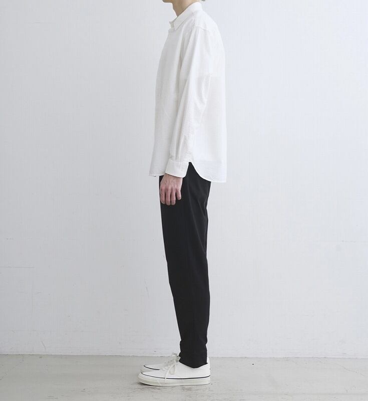 ドライな風合いが特徴で、肌離れが良く通気性にも優れているため、季節の変わり目から暑い時期まで快適に着用頂けます。