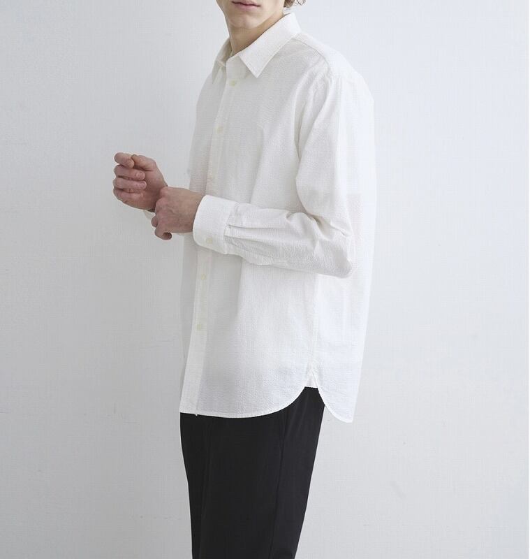 アメリカ原産の綿を100%使用した、コットンシアサッカーシャツ。