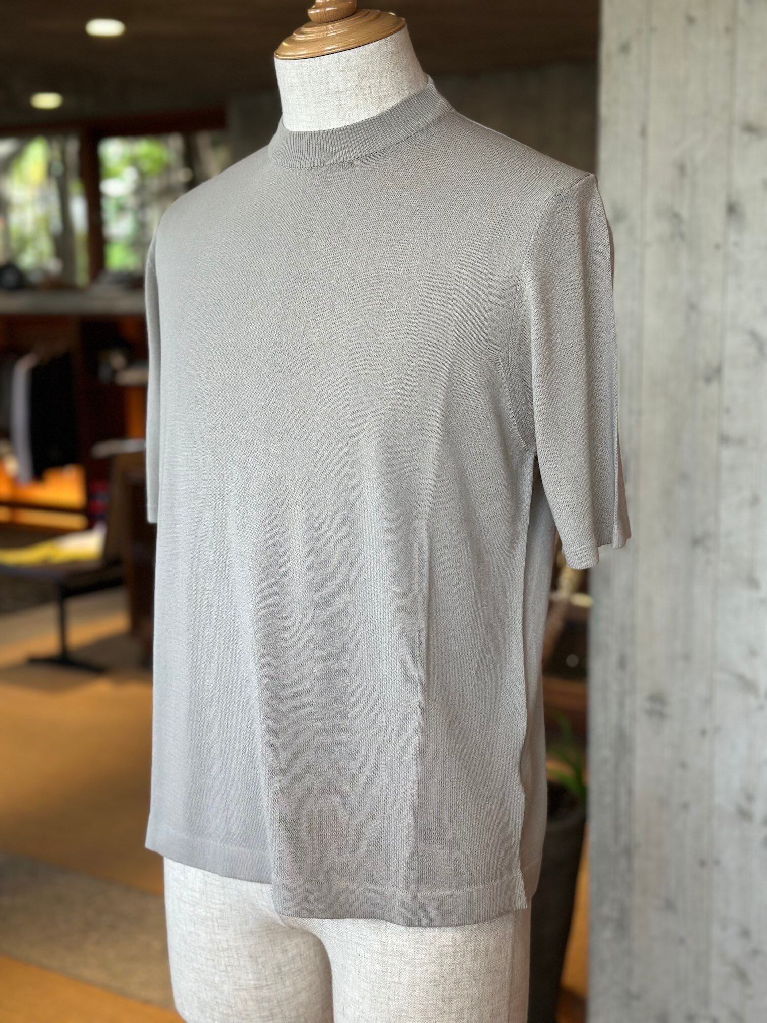 なかでも素材開発をとても重要な要素と捉えており、サマーシーズンはアイス鹿の子やエジプシャンコットン、ウインターシーズンはラムズウールやアルパカを重用しつつ、これらの素材にウォッシュ加工や圧縮加工を行うことで独特の風合いと着心地を実現しています。