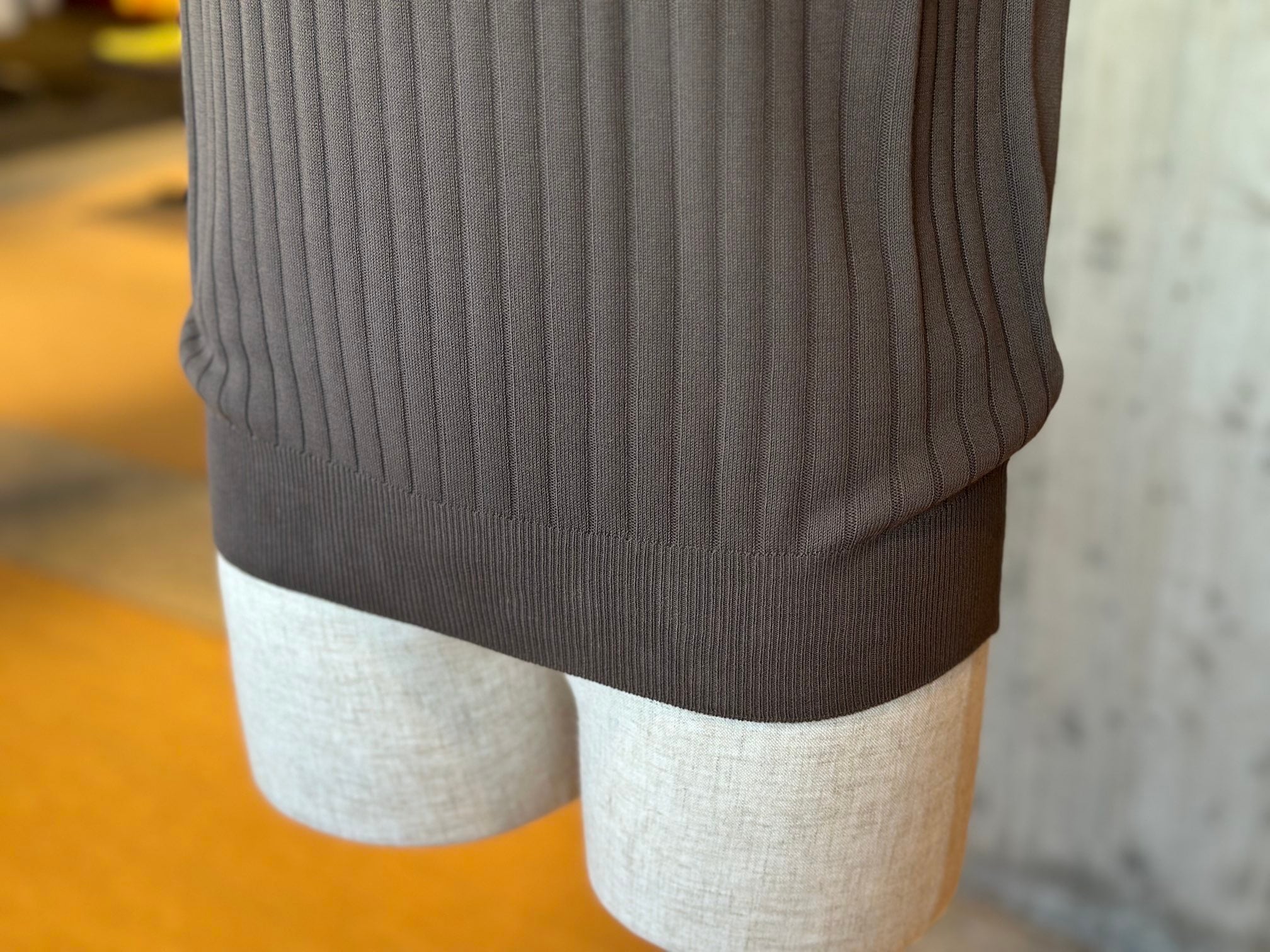 なかでも素材開発をとても重要な要素と捉えており、サマーシーズンはアイス鹿の子やエジプシャンコットン、ウインターシーズンはラムズウールやアルパカを重用しつつ、これらの素材にウォッシュ加工や圧縮加工を行うことで独特の風合いと着心地を実現しています。