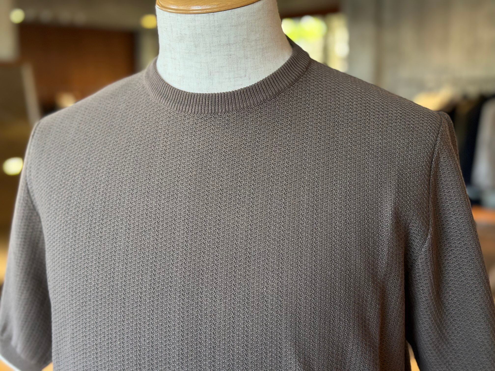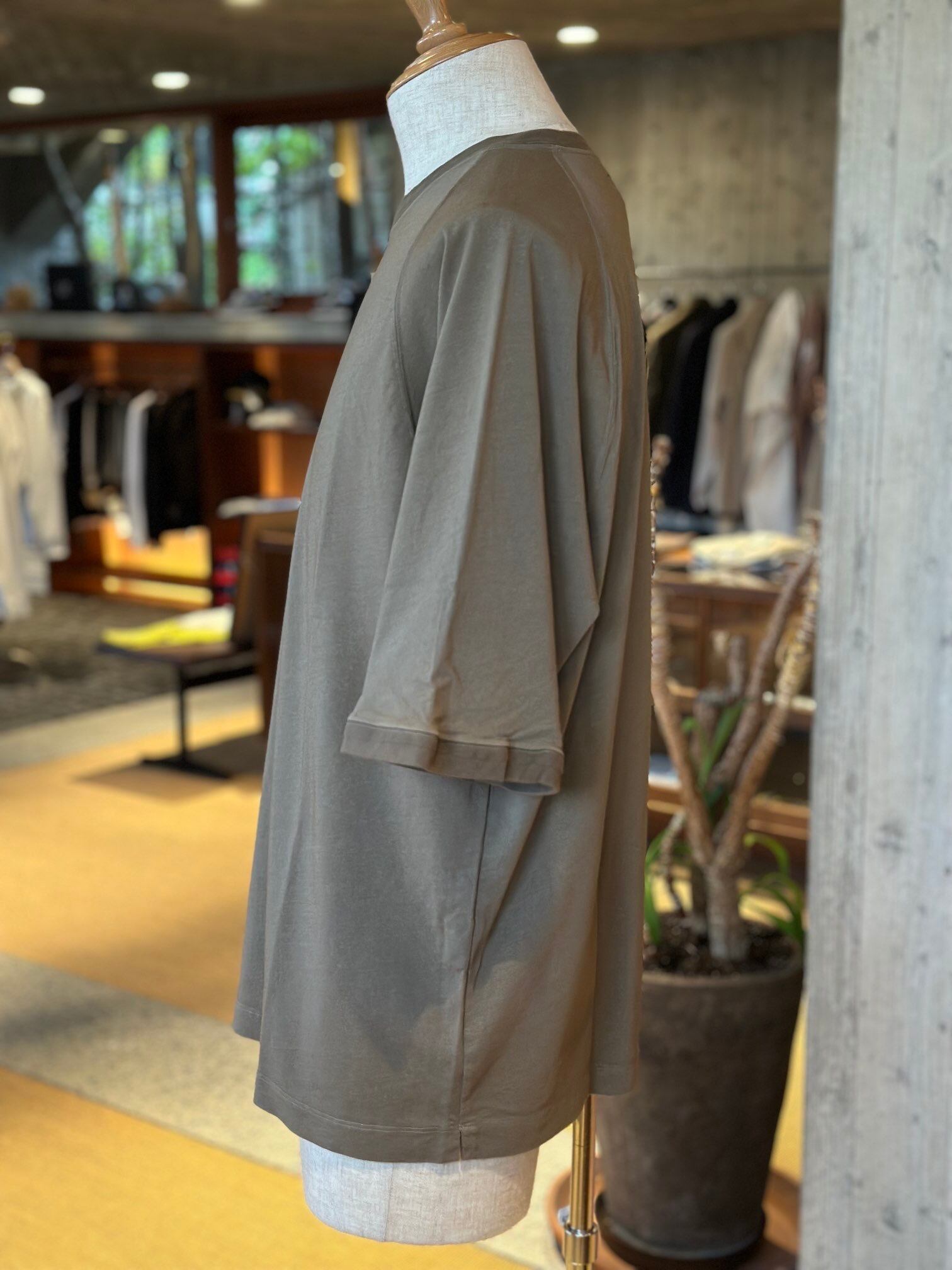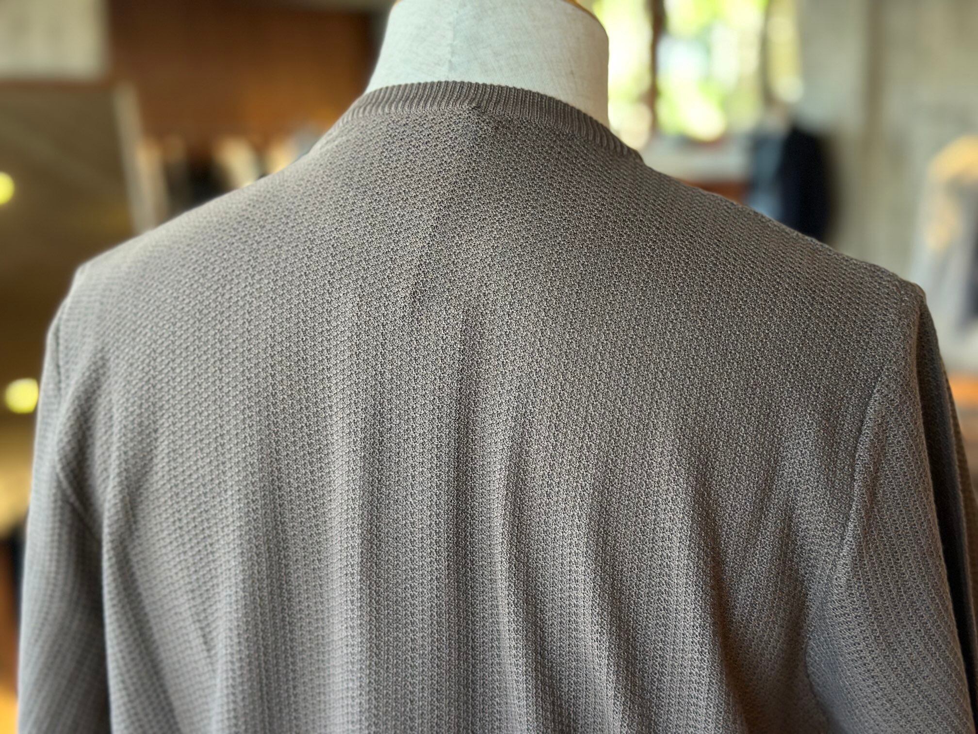 なかでも素材開発をとても重要な要素と捉えており、サマーシーズンはアイス鹿の子やエジプシャンコットン、ウインターシーズンはラムズウールやアルパカを重用しつつ、これらの素材にウォッシュ加工や圧縮加工を行うことで独特の風合いと着心地を実現しています。