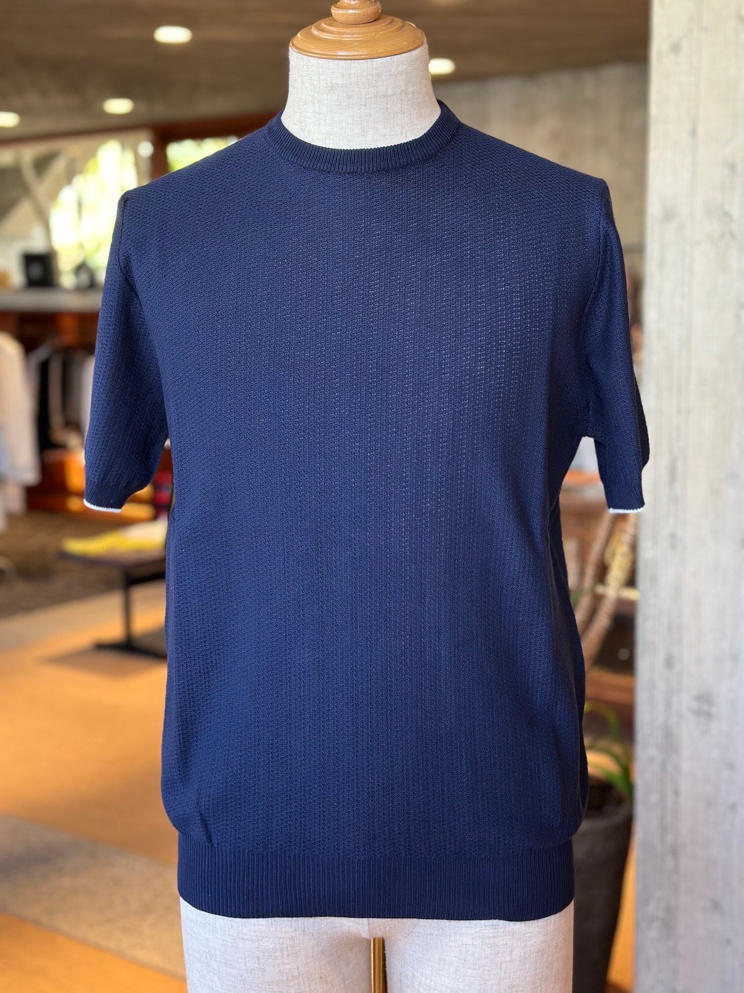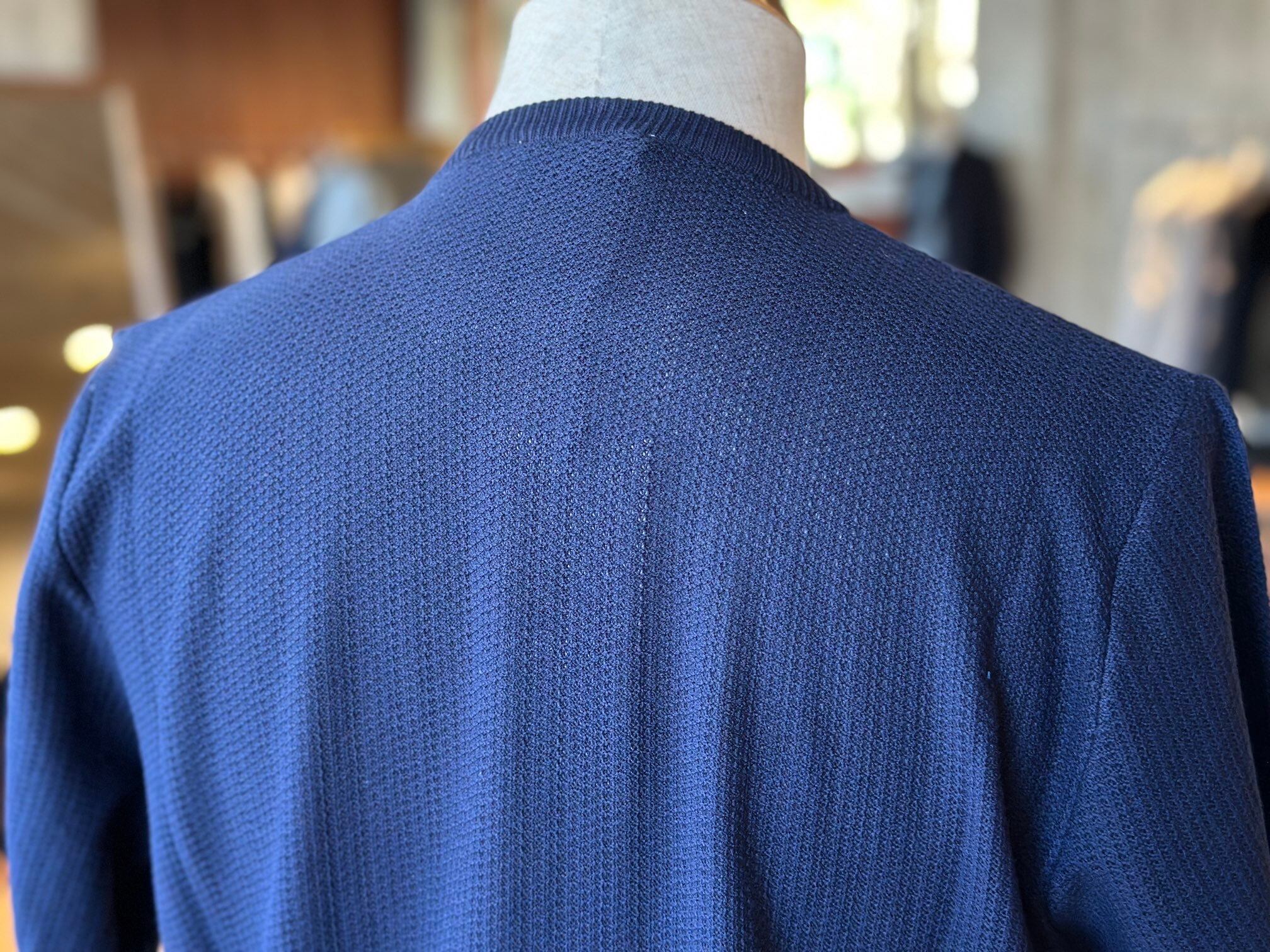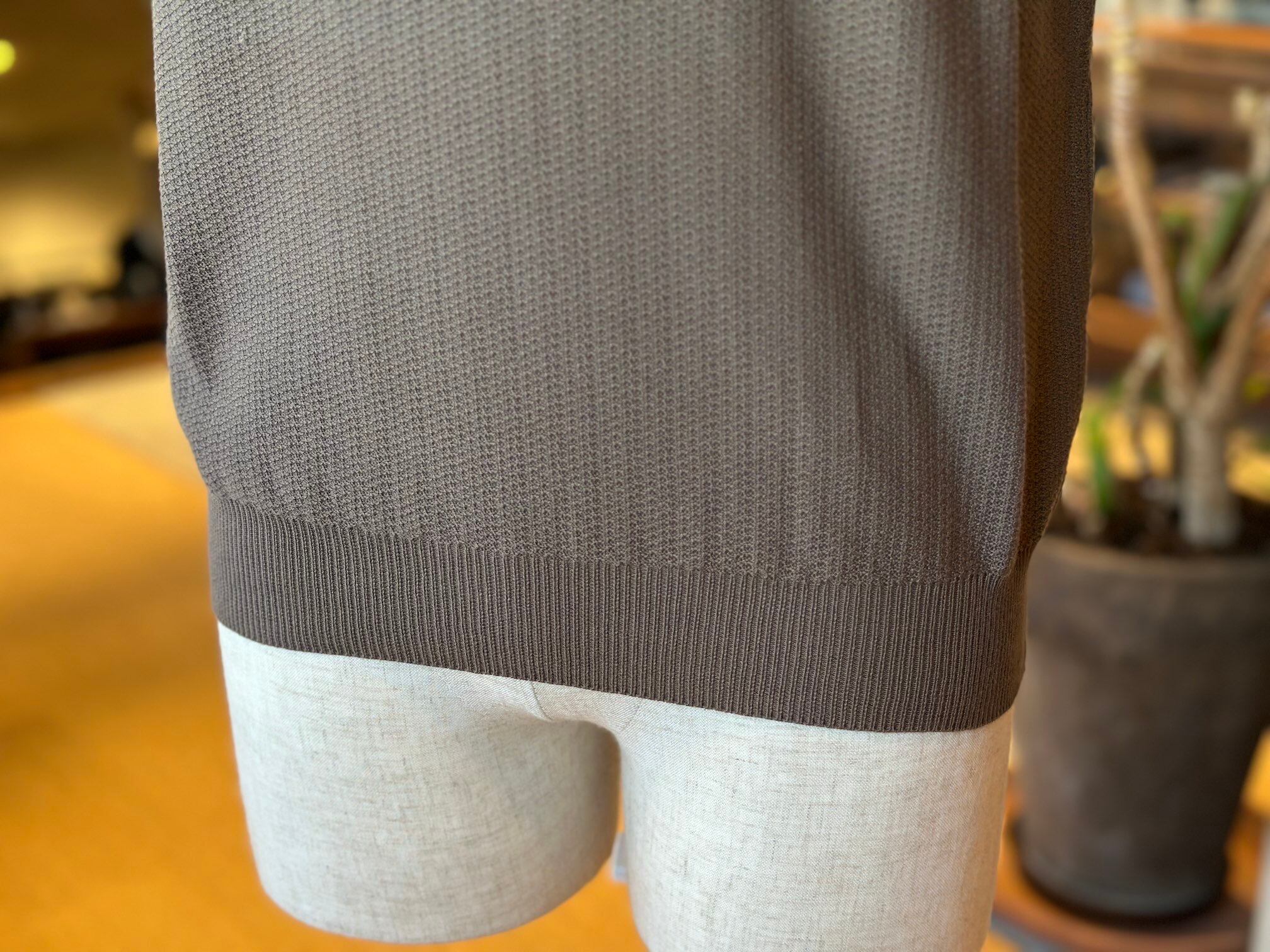 なかでも素材開発をとても重要な要素と捉えており、サマーシーズンはアイス鹿の子やエジプシャンコットン、ウインターシーズンはラムズウールやアルパカを重用しつつ、これらの素材にウォッシュ加工や圧縮加工を行うことで独特の風合いと着心地を実現しています。