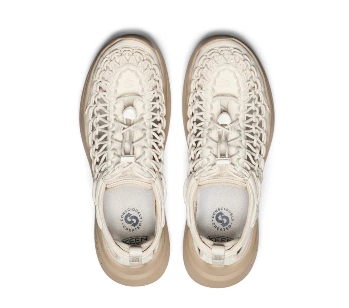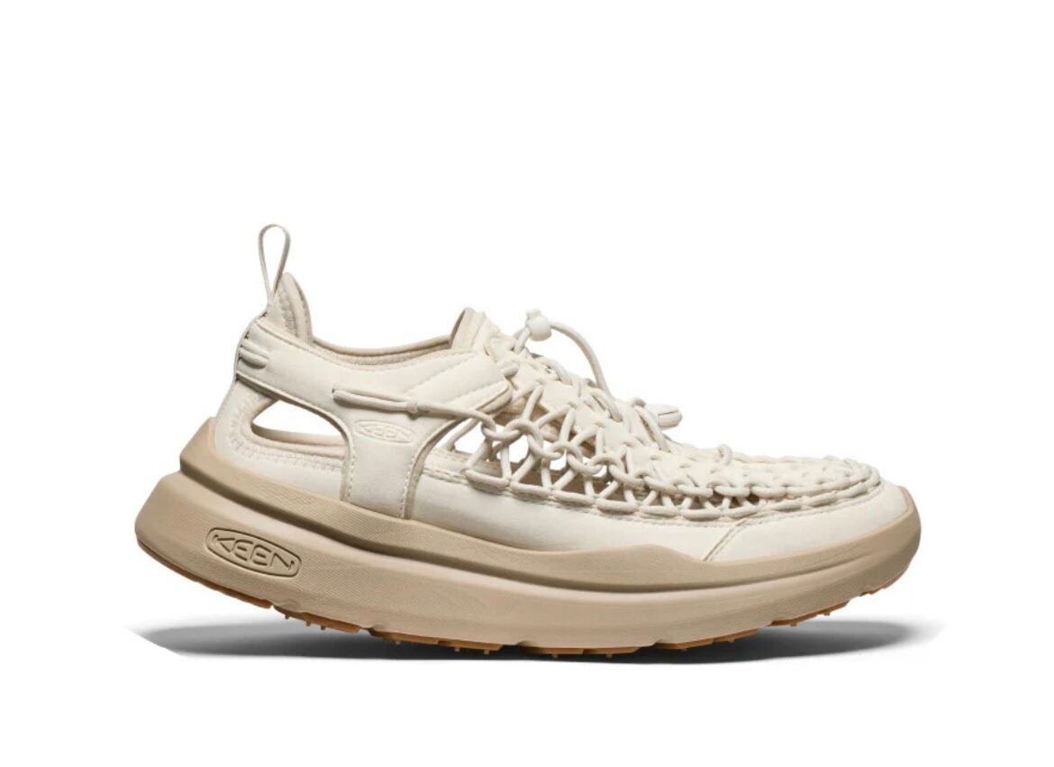OPEN AIR SNEAKER. アッパーをコードで形成した革命的な一足UNEEKに、カーブを描くソールユニット「キーン・カーブKEEN.CURVE」を融合。UNEEKのアッパーデザインに、まるで転がるような歩き心地を提供し、もっと長時間、もっと遠くへ、そしてもっと外の活動を楽しみ・歩くことを可能にする機能を搭載。ウォーキングからアーバン、旅行まで幅広い用途に対応。