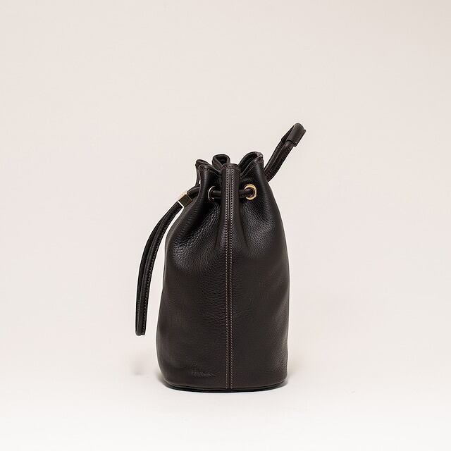 DRAWSTRING BAG SMALLは、シンプルながらも存在感のあるデザインが魅力のドローストリングバッグです。ミドルなサイズ感ながら、イタリア製クローム鞣しレザーを採用し、普段使いからトラベルまで幅広いシーンで活躍します。
