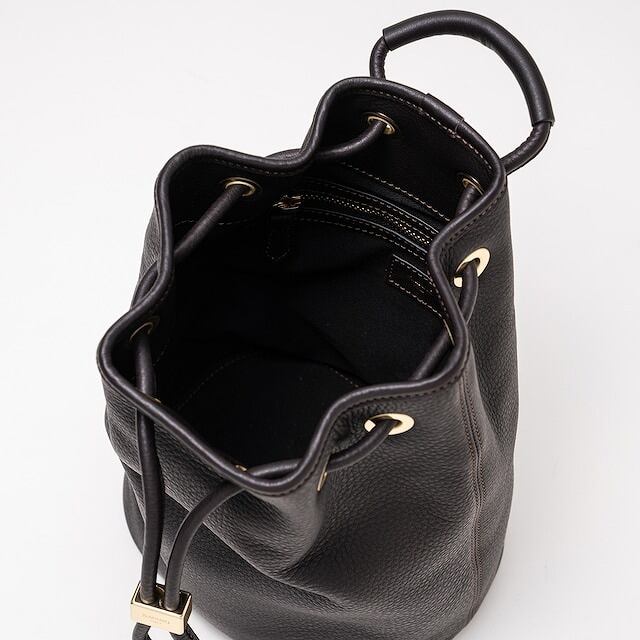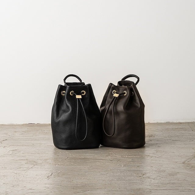 開口部はドローストリング仕様で、素早く開閉が可能。そのため、さっと必要なアイテムを取り出すことができ、利便性も抜群です。シンプルながらも上品な雰囲気、軽量で持ち運びやすく、気軽に使えるデイリーバッグとして最適です。