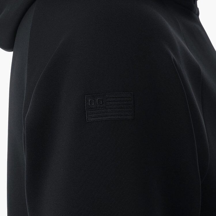 ・胸元には見る角度によって色味や光沢が変化して見えるBRIEFINGロゴを、右袖には星条旗モチーフの刺繍を配置。