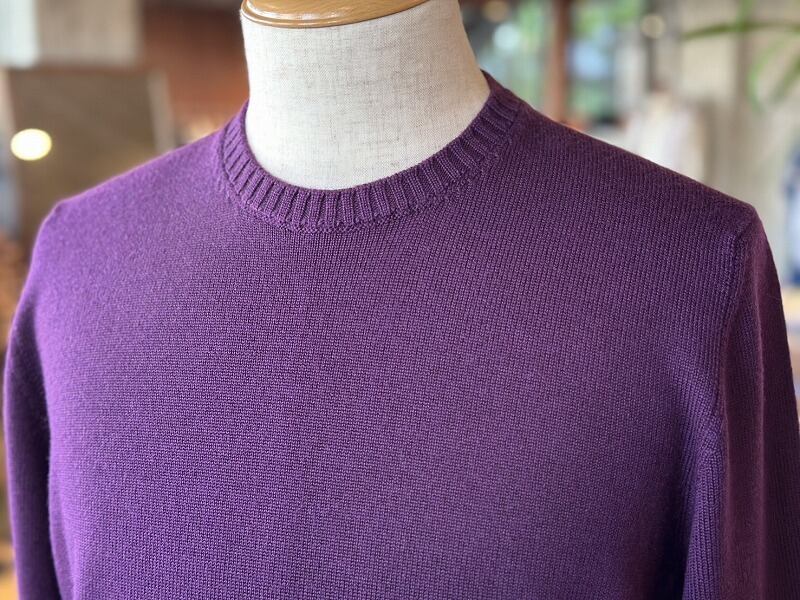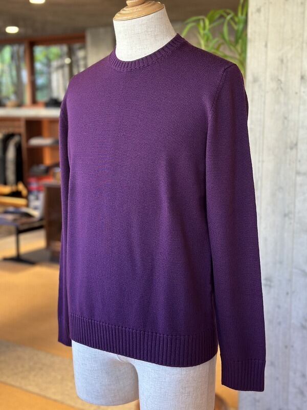 上質なエクストラファインメリノウールを使用した人気の定番クルーネックニット。8Gミドルゲージのニットは丁度いい厚みと非常に柔らかくソフトタッチ。クラシカルなデザインと発色の良さが魅力の一枚です。